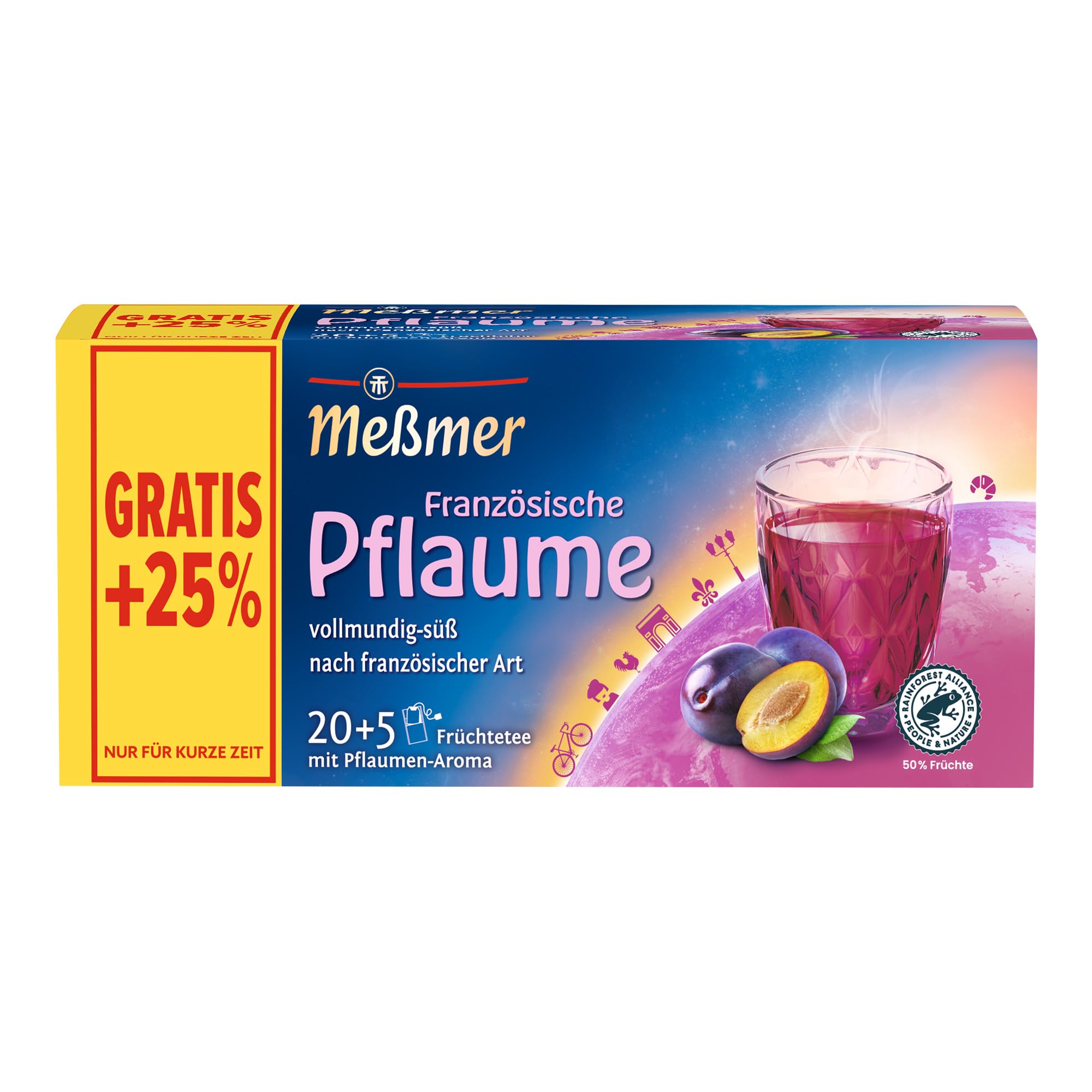 Messmer Ländertee Französische Pflaume | Vorteilspackung 20+5 Teebeutel | Früchtetee mit Pflaumen-Aroma
