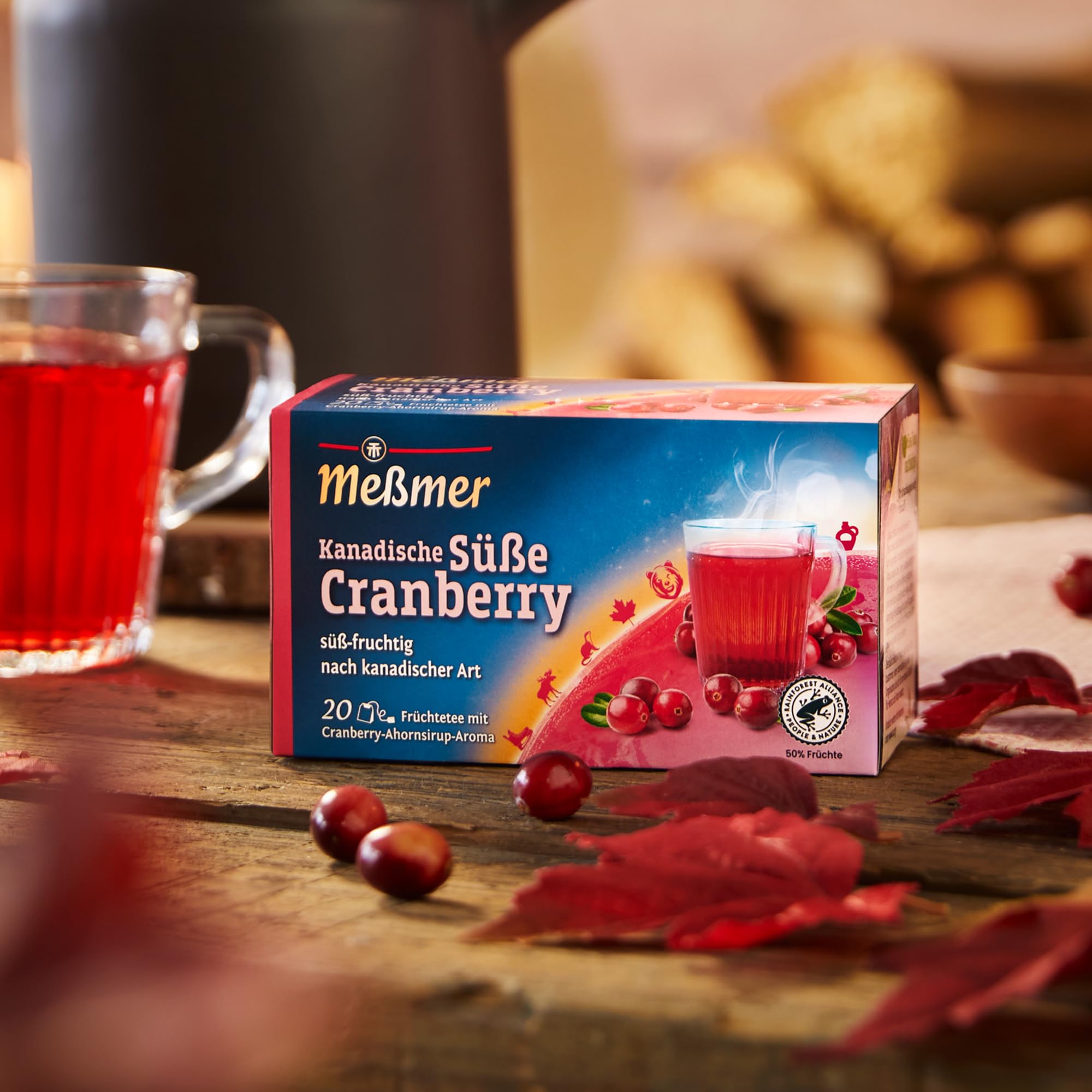 Messmer Ländertee | Kanadische Süsse Cranberry | 20 Teebeutel | Glutenfrei | Laktosefrei | Vegan (Packung mit 4)