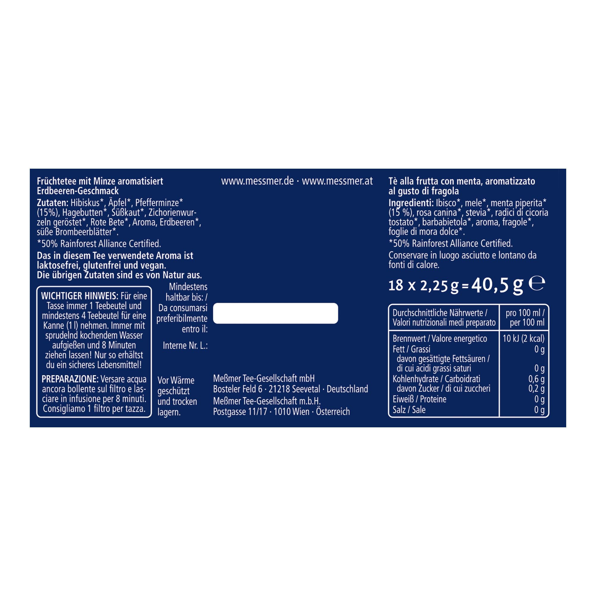 Messmer Sprung ins Zauberland | Erdbeere-Minze | Online Exklusiv | 18 Teebeutel | Glutenfrei | Laktosefrei | Vegan