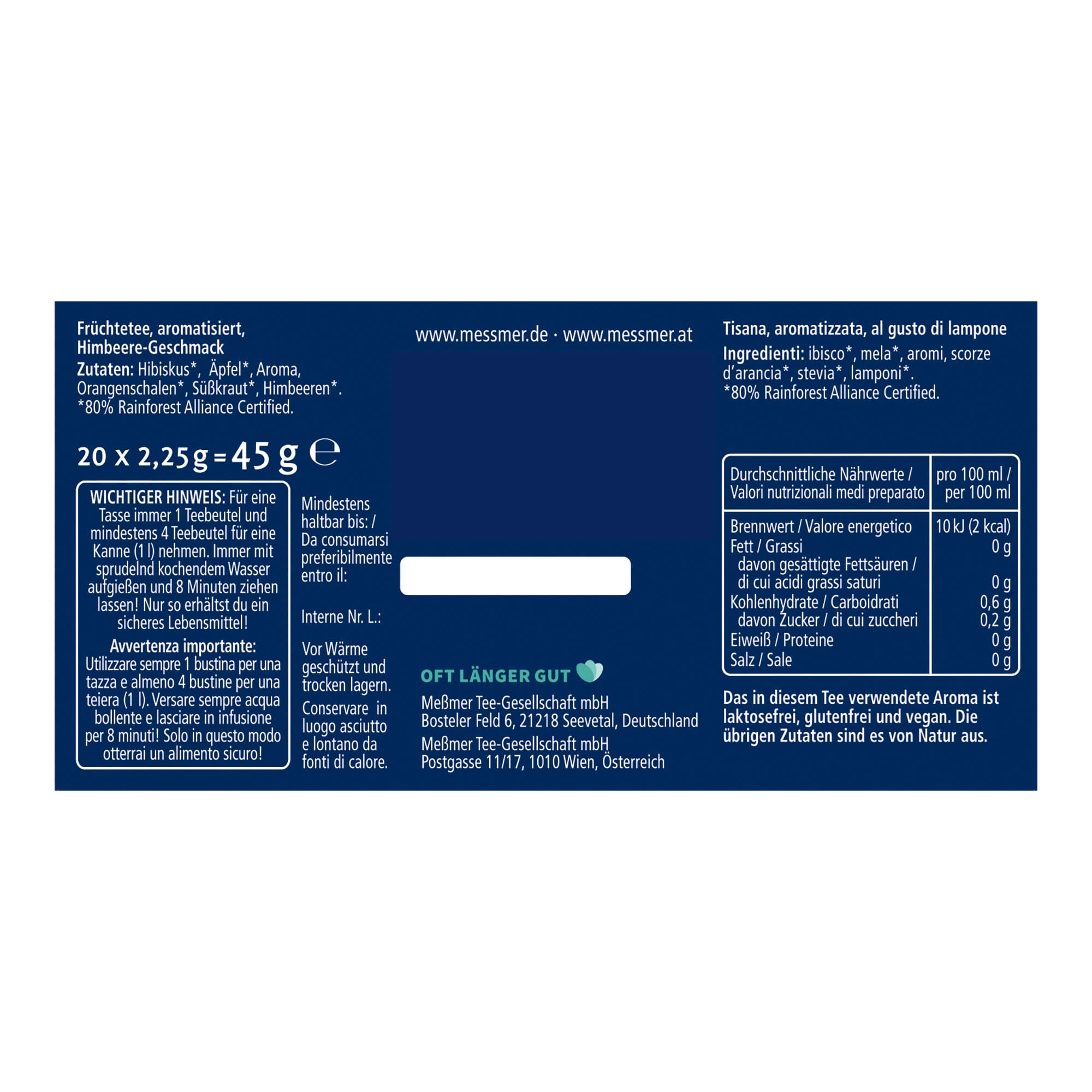 Messmer Heisse Himbeere | Früchtetee mit Himbeer-Aroma | 20 Teebeutel | fruchtig & süss | ideal für kalte Tage