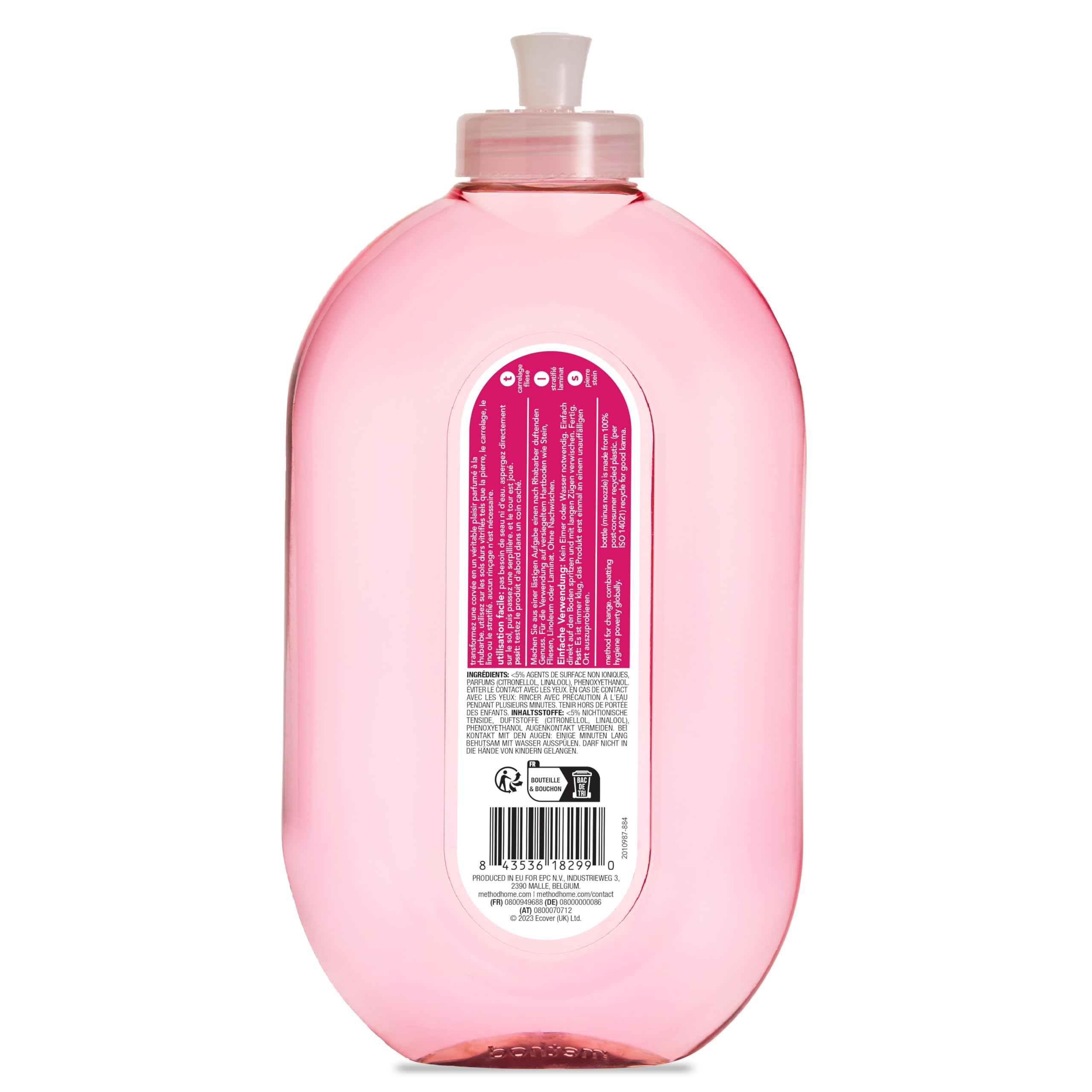 method Bodenreiniger, Reiniger für strahlenden Glanz auf Böden, frischer Rhabarberduft, gründliche Reinigung, 1 x 739 ml (Packung mit 2)