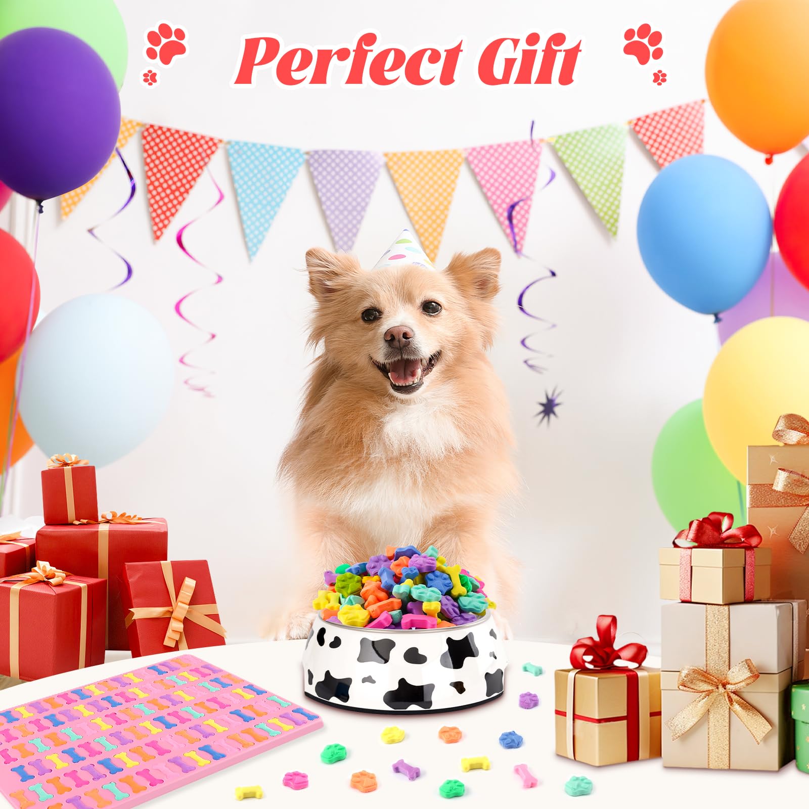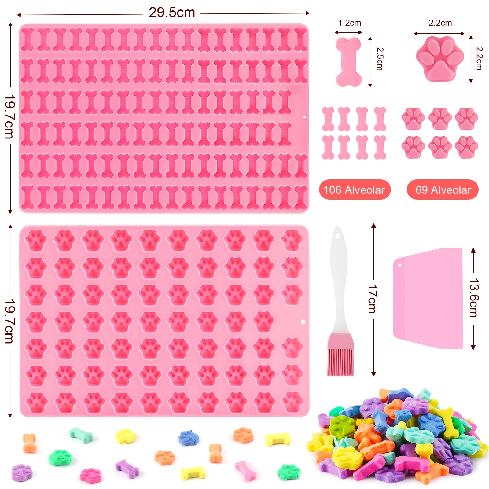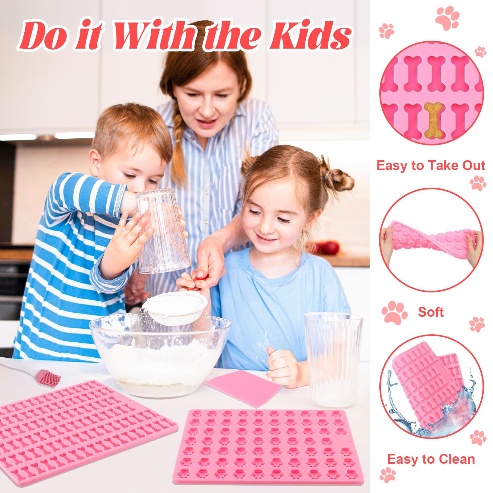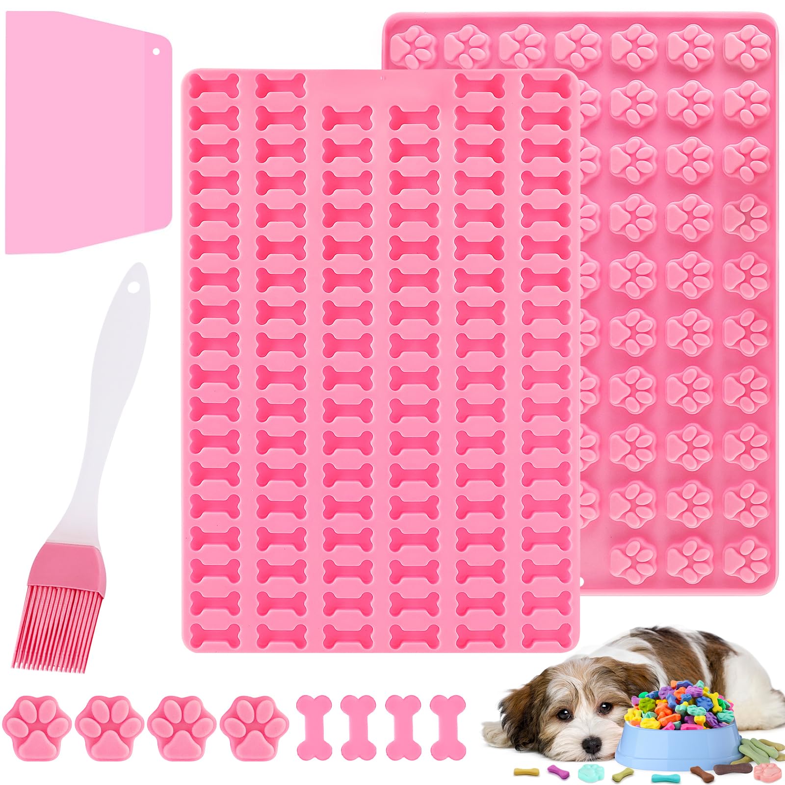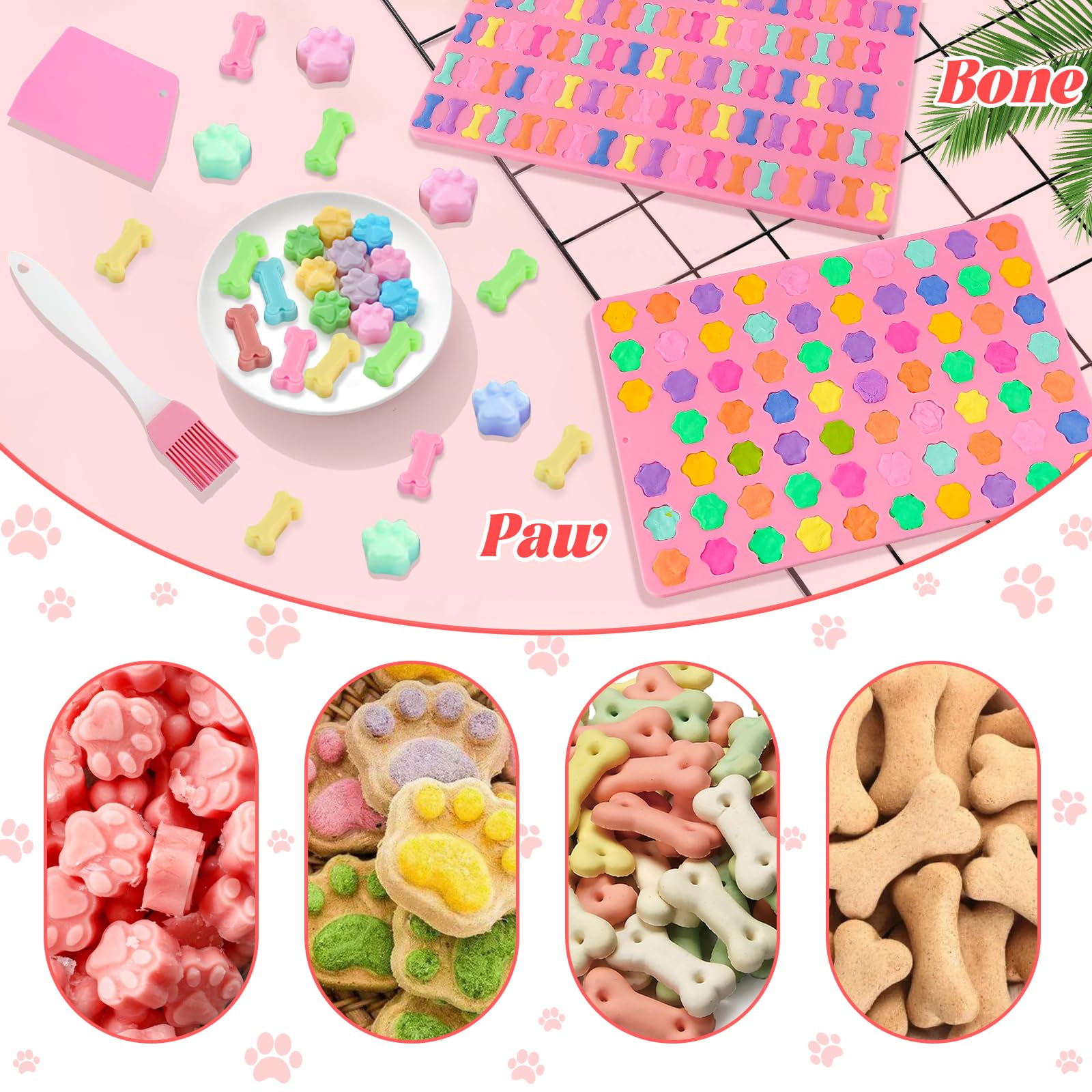Mexgcom 2 Stück Silikon Backmatte Hundekekse, Mini Hundeknochen Form + Fussabdruck Form, Antihaftend Backmatte Hundekekse Mit Bürsten- und Teigmesser für DIY Hundeleckerlies, Kekse, BPA-Frei