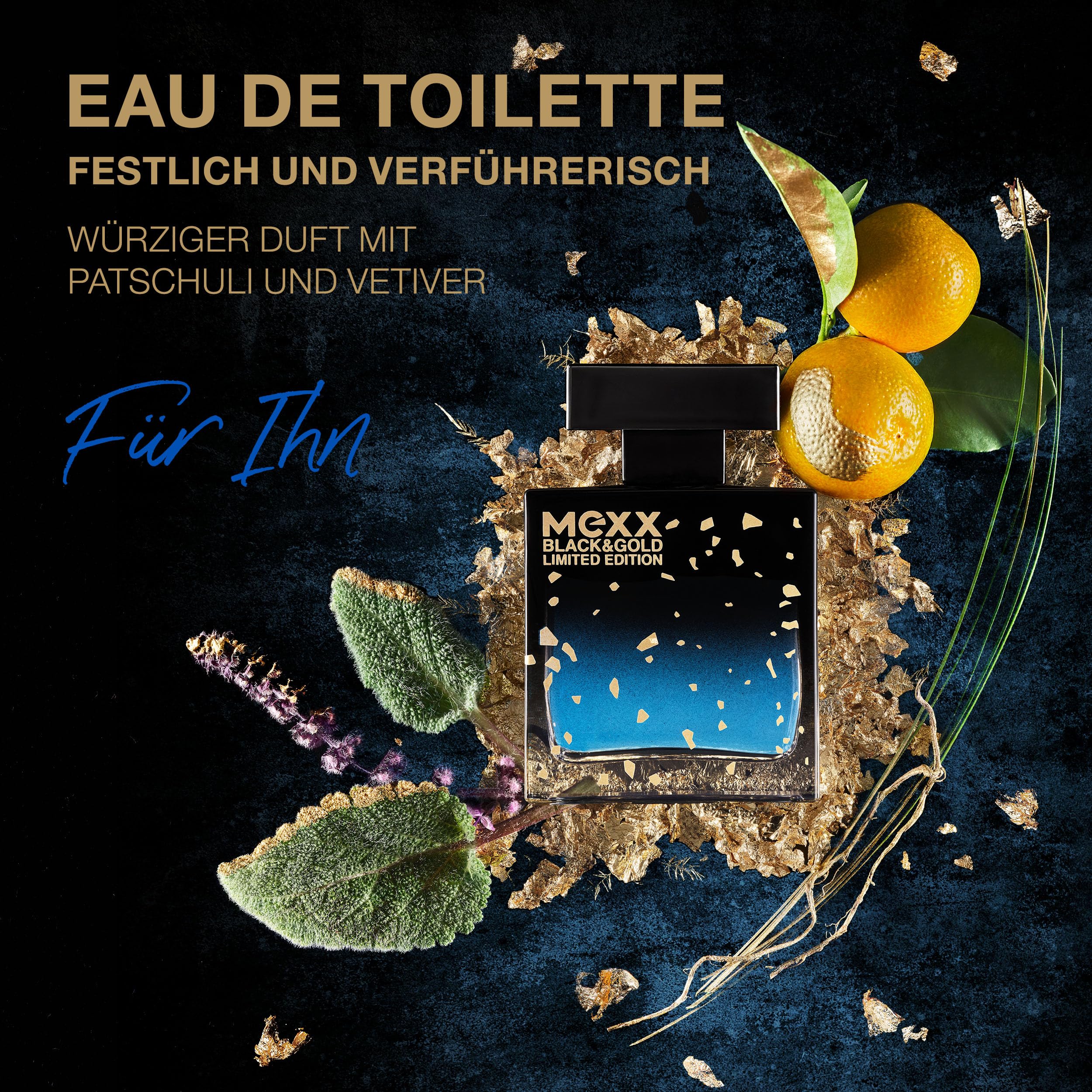 Mexx Black & Gold Limited Edition Man Eau de Toilette, holzig-fruchtiger Herrenduft, 50ml
