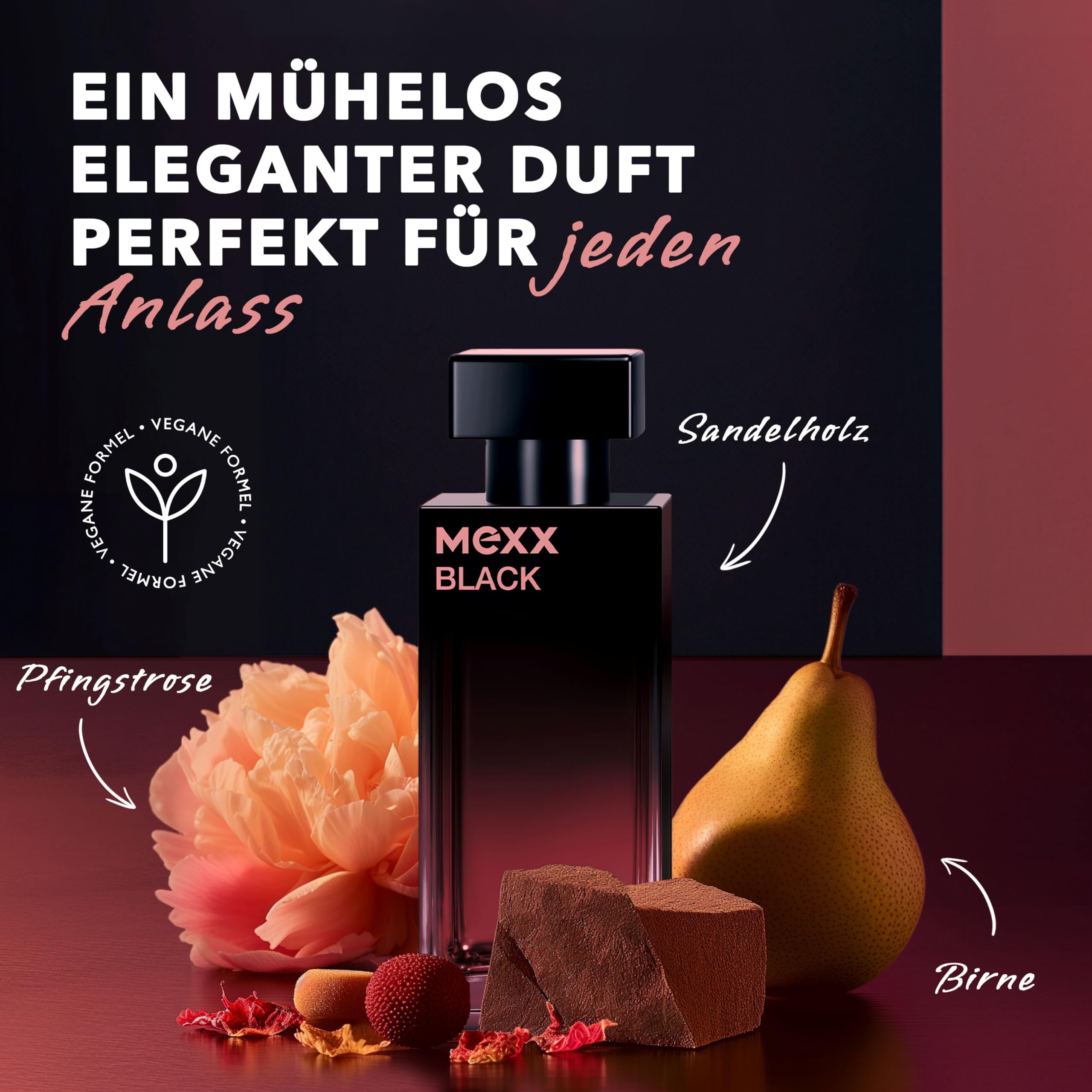 MEXX BLACK Woman Eau de Toilette, fesselnd-intensiver Duft fruchtiger Noten für sinnliche Frauen, 30ml