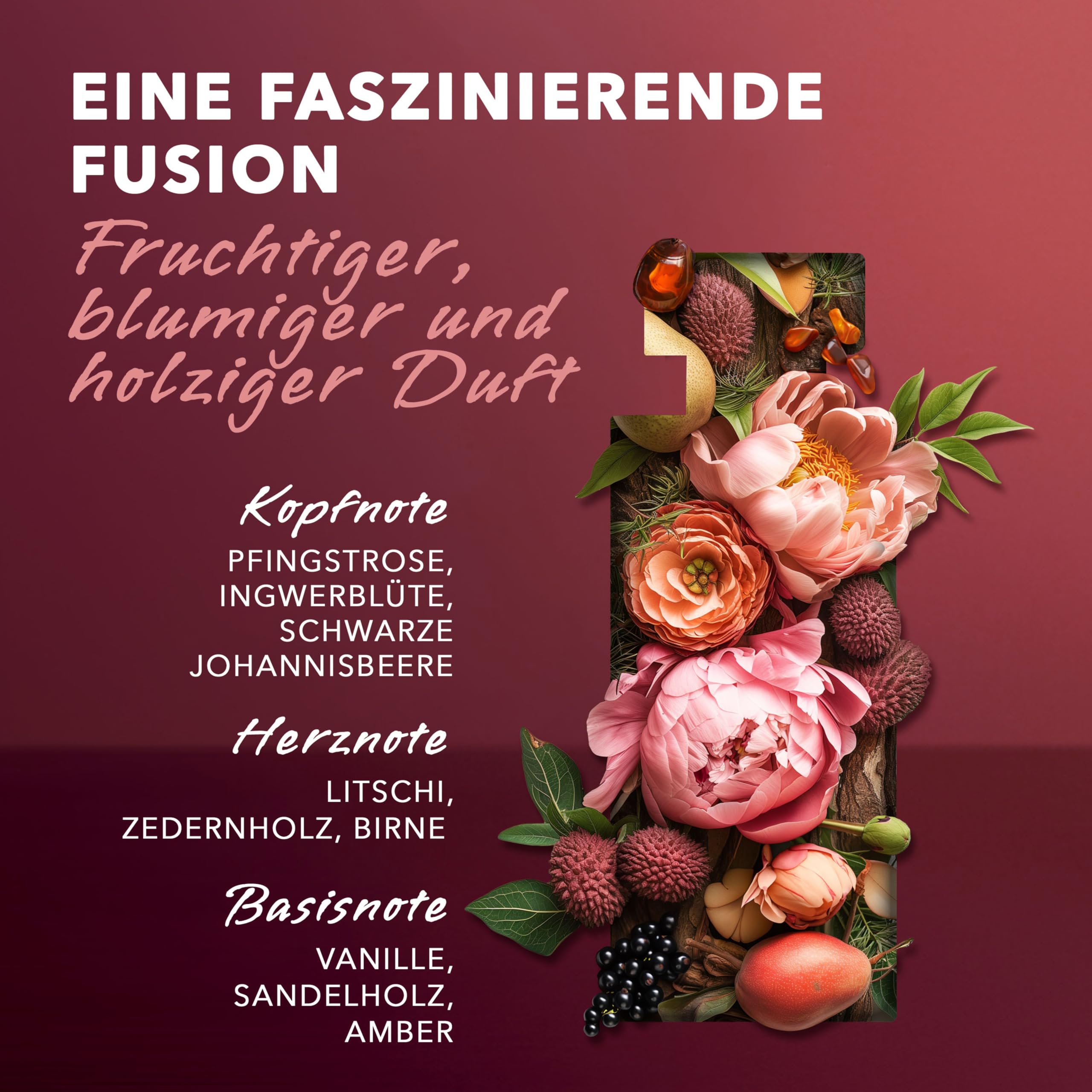 Verführerische Sinnlichkeit und weibliche Eleganz: Das Mexx Black Woman Eau de Toilette ist ein fesselnd-intensiver Duft für Frauen aus blumigen und saftig-süssen Noten. Die betörende Duftkomposition startet in der Kopfnote mit einem üppigen Blumenbouquet aus Pfingstrose, Ingwerblüte, Ringelblume und Freesie, welches in einer saftigen Herznote aus Litschi, Birne und Aprikose aufgeht, die mit einem fruchtigen Lotus-Akkord und weichem Sandelholz verwoben ist. Die beruhigende Basisnote bilden Vanille, Sandelholz und Amber. Das unwiderstehliche Mexx Black Woman Eau de Toilette passt zu jeder Gelegenheit, eignet sich aber besonders für einen aufregenden Abend. Die Duftkomposition überzeigt mit neuer, veganer Formel und reduzierter Verpackung mit FSC-zertifizierten Materialien. In dem eleganten, rechteckigen Glasflakon mit schwarzen Ombre-Design kommt der betörende Duft besonders gut zur Geltung.