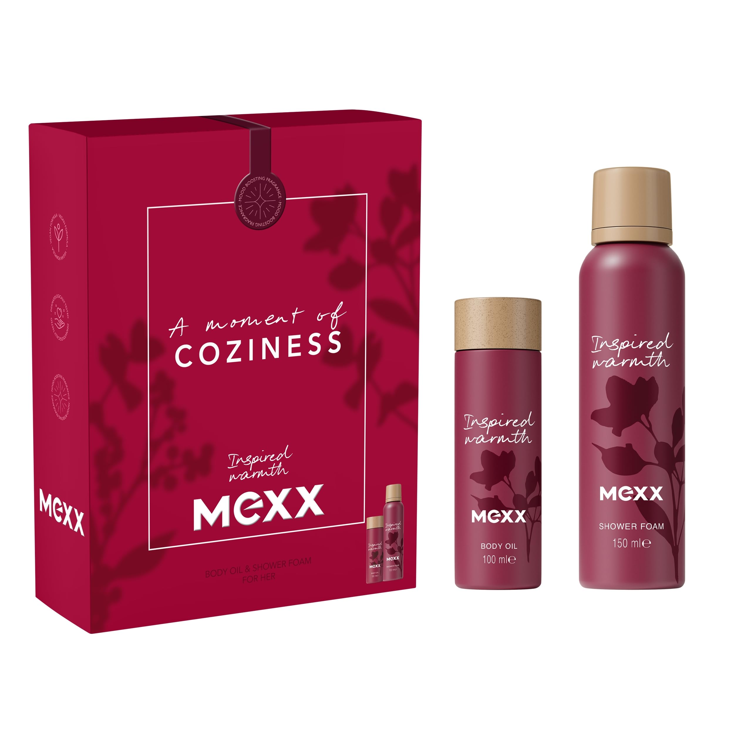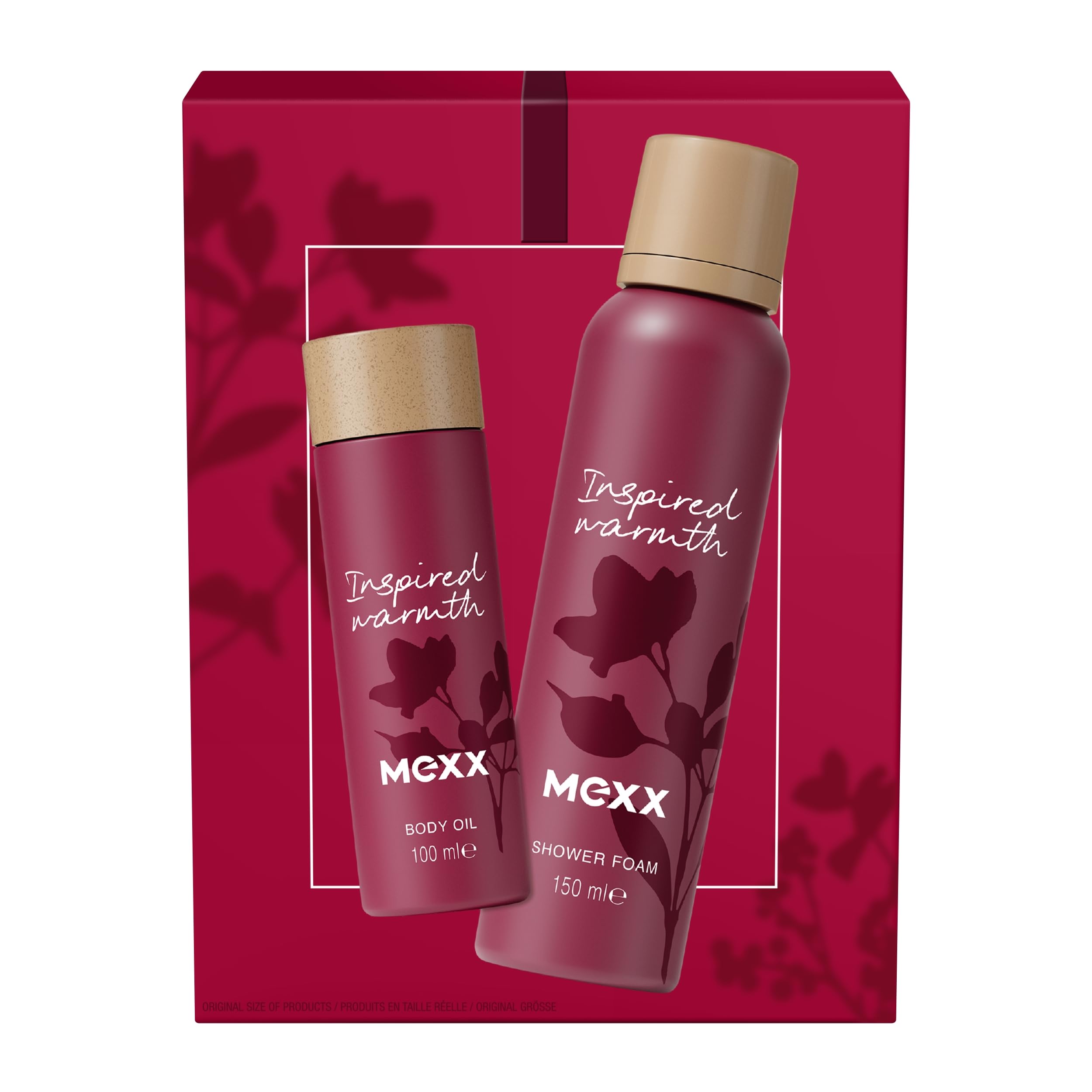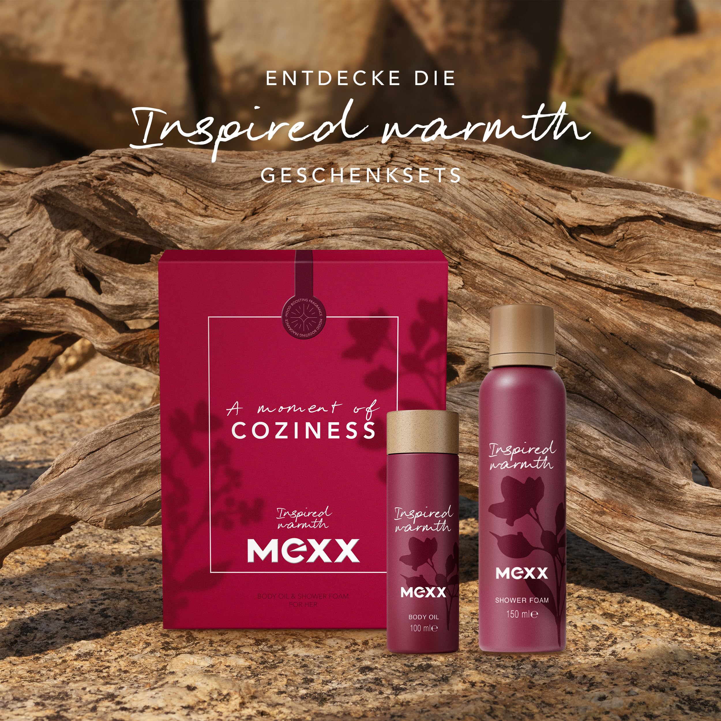 Mexx Inspired Warmth Geschenkset mit Duschschaum und Körperöl, Amber-Duft und vegane, pflegende Formel 150 ml and 100 ml
