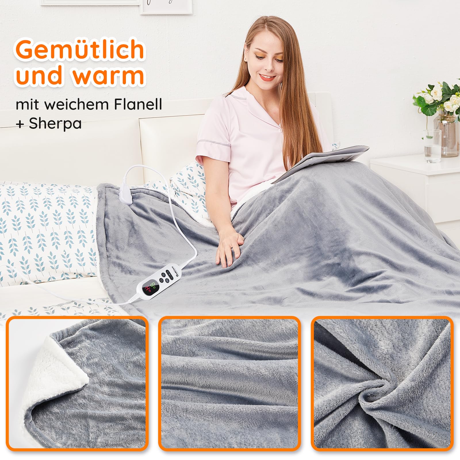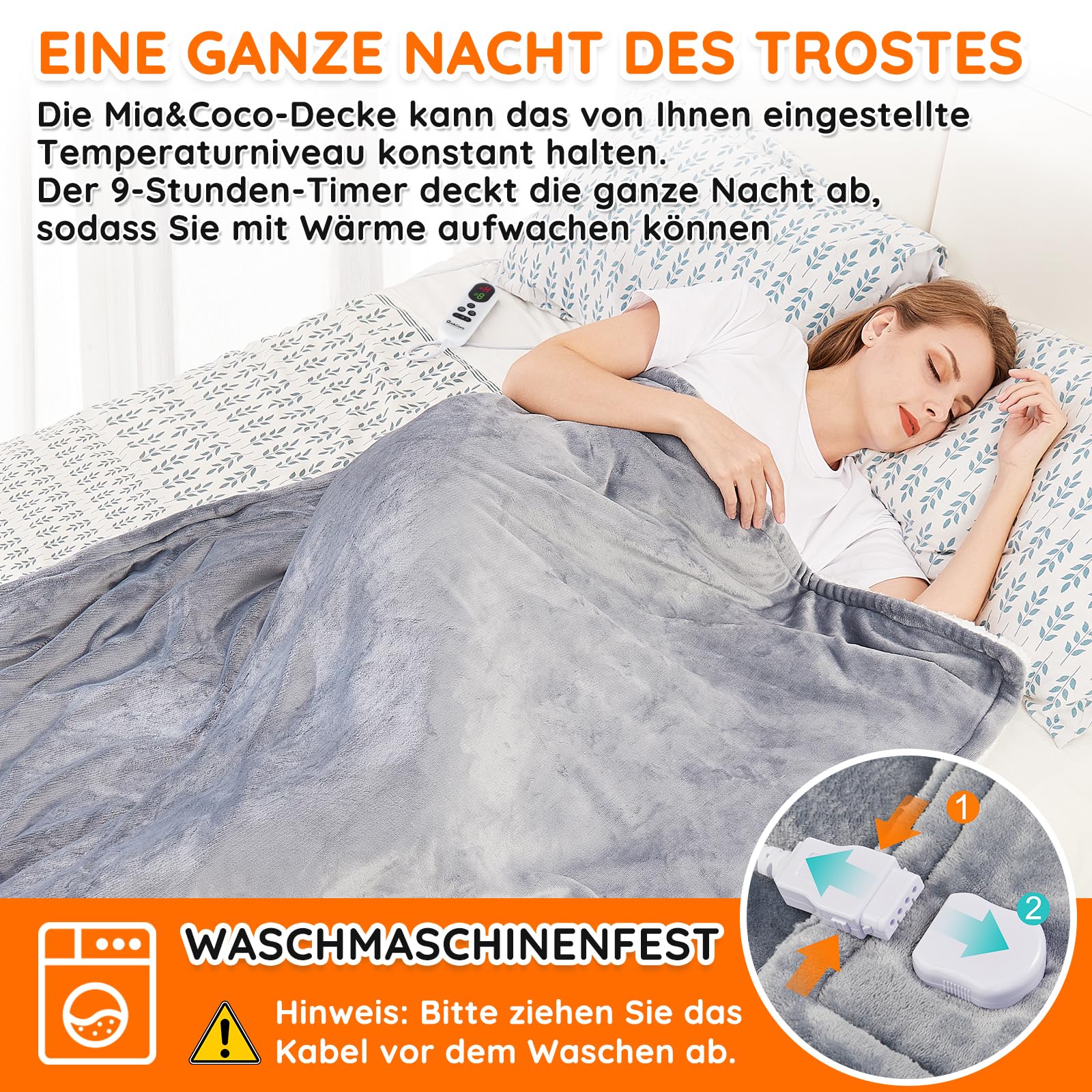 Mia&Coco Heizdecke mit Abschaltautomatik, 10 Heizstufen Up-to-9 Stunden Auto-Off-Timer Überhitzungsschutz, Elektrische Wärmedecke Bett Wärme Decke ETL-Zertifiziert für Home & Office Flanell Waschbar