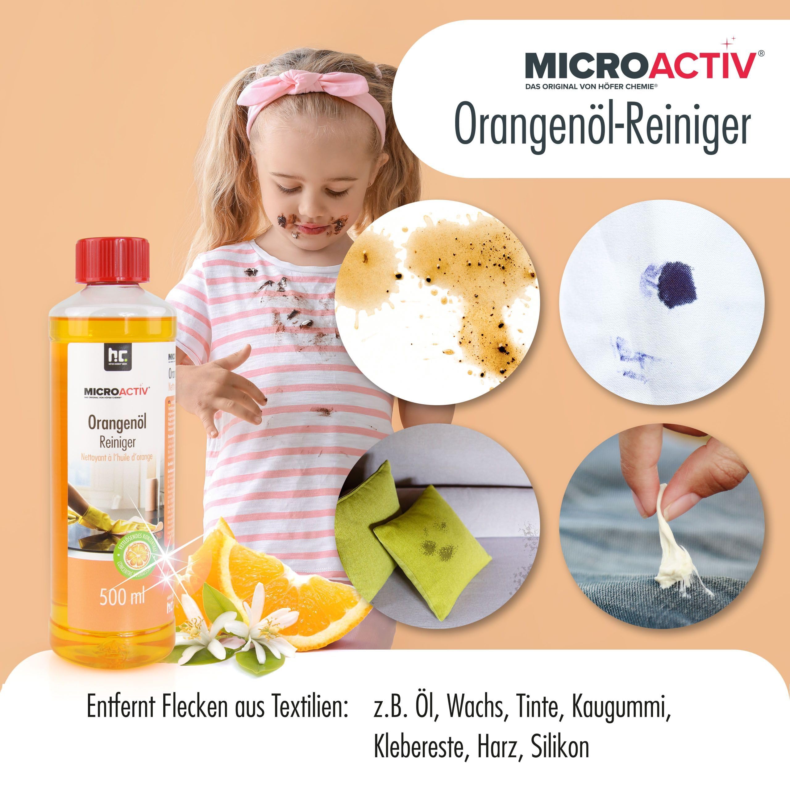 MICROACTIV Orangenöl Reiniger Konzentrat 1 x 500ml - Allzweckreiniger & Fettlöser mit frischem Orangenduft - Universalreiniger Made in Germany
