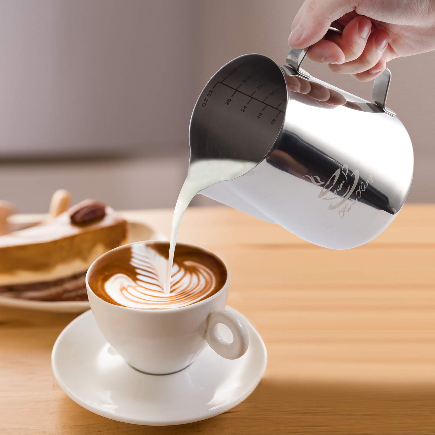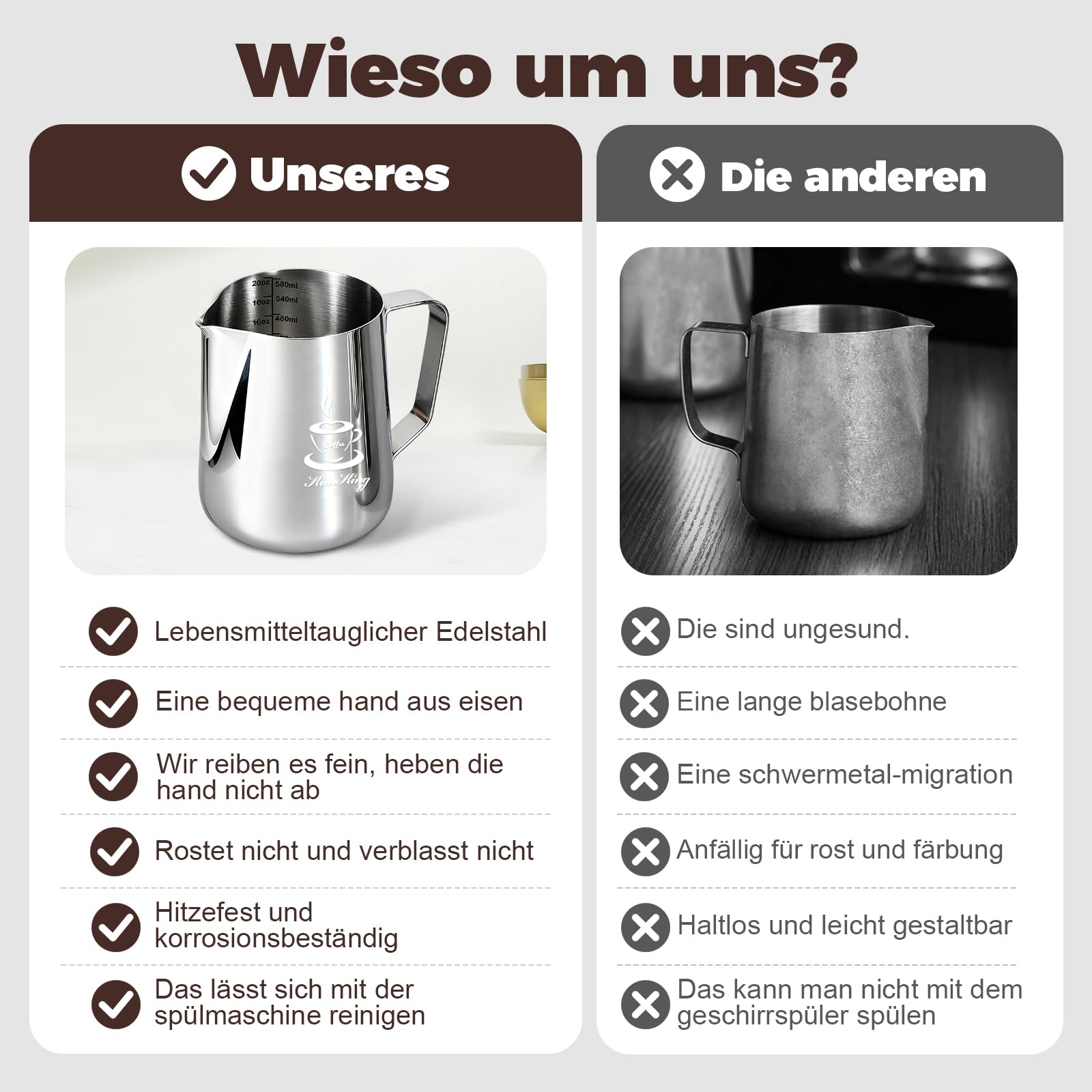 Hohe Qualität: Unser Schaumkrug ist aus lebensmittelechtem Edelstahl 304 und ist mit einem Präzisionsauslauf und einem bequemen Griff geformt.