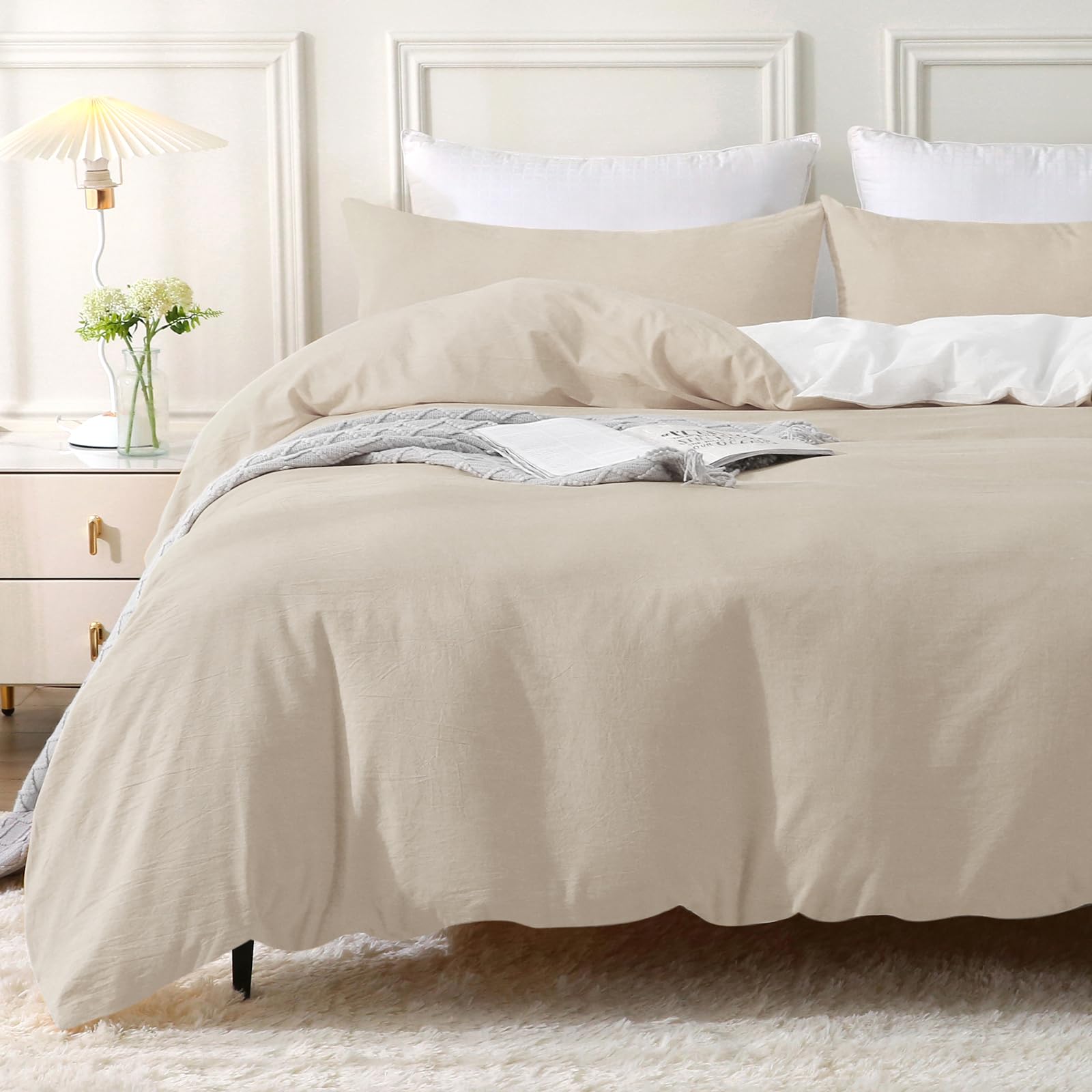 - 【Natürliches Design】 Dieser Bettbezug besteht aus 100 % gewaschener Baumwolle, der Stoff wurde durch ein spezielles Verfahren verarbeitet und die Oberfläche des Stoffes hat ein leichtes natürliches Faltengefühl. Das Crinkle-Finish sorgt für einen lässigen Vintage-Look. Behält die Faltenstruktur ohne Bügeln bei.
