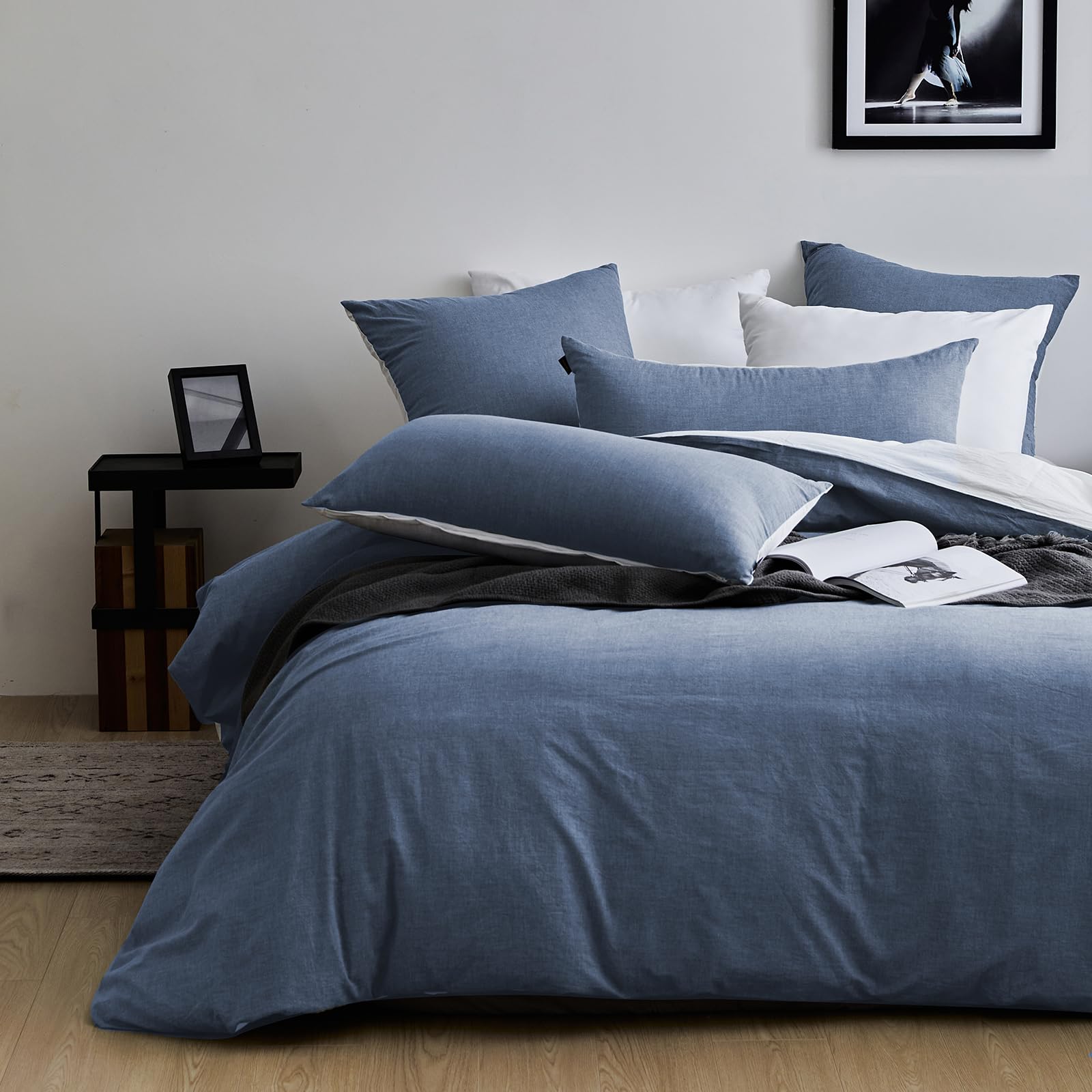 - 【Natürliches Design】 Dieser Bettbezug besteht aus 100 % gewaschener Baumwolle, der Stoff wurde durch ein spezielles Verfahren verarbeitet und die Oberfläche des Stoffes hat ein leichtes natürliches Faltengefühl. Das Crinkle-Finish sorgt für einen lässigen Vintage-Look. Behält die Faltenstruktur ohne Bügeln bei.