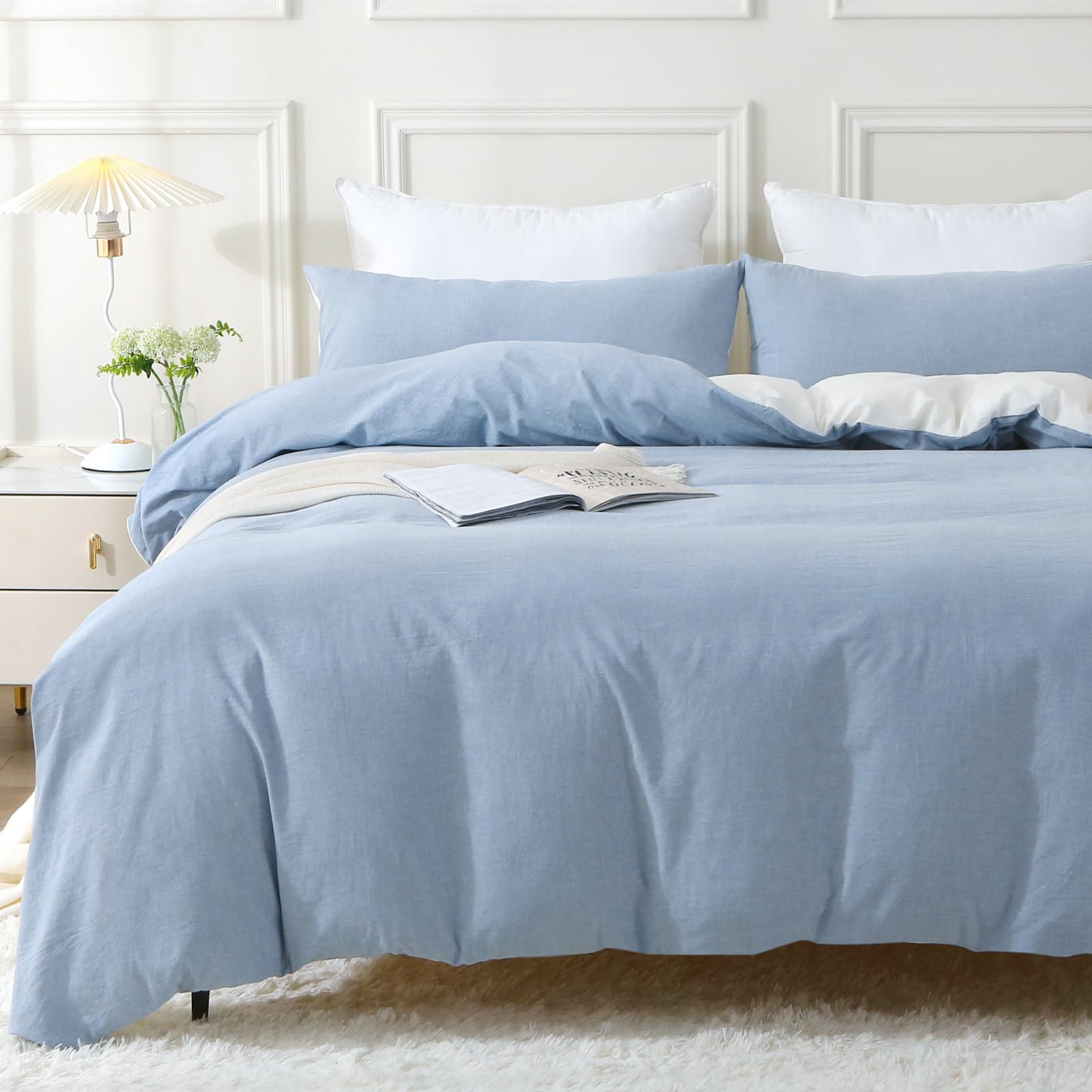 - 【Natürliches Design】 Dieser Bettbezug besteht aus 100 % gewaschener Baumwolle, der Stoff wurde durch ein spezielles Verfahren verarbeitet und die Oberfläche des Stoffes hat ein leichtes natürliches Faltengefühl. Das Crinkle-Finish sorgt für einen lässigen Vintage-Look. Behält die Faltenstruktur ohne Bügeln bei.