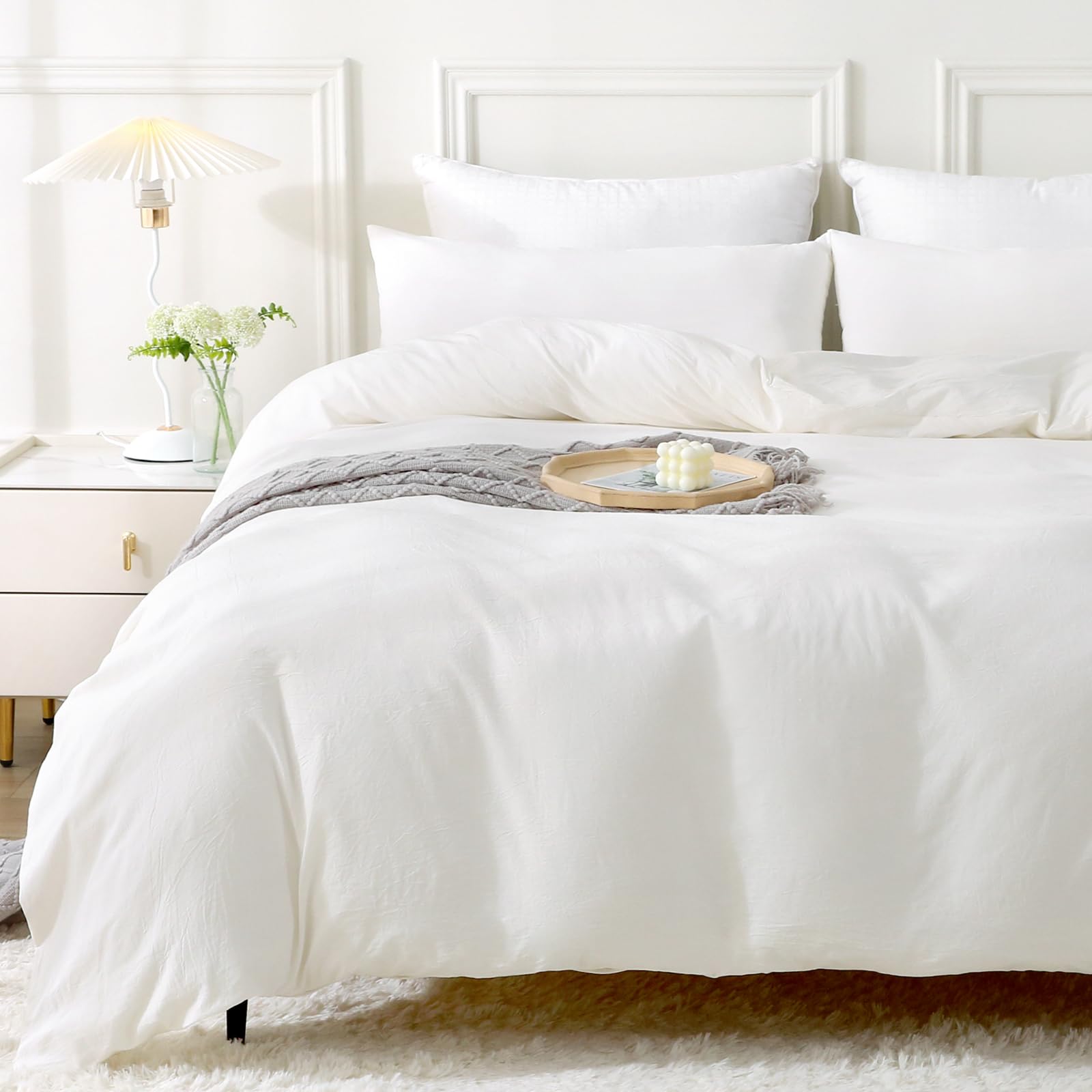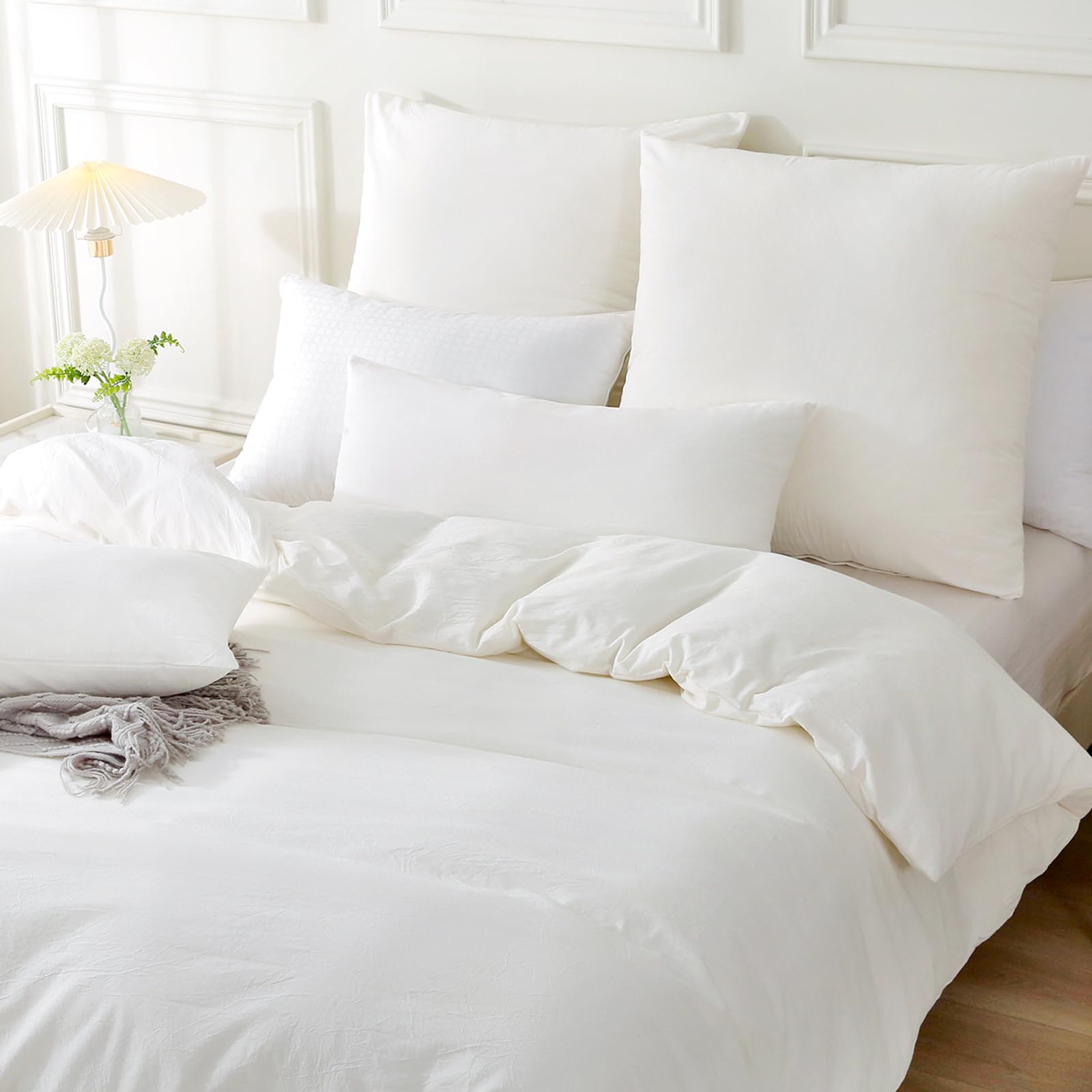 MILDLY Bettwäsche 155x220 Baumwolle 2 Teilig, Bettwäsche-Sets Milky White mit Reissverschluss, Ähnliche Textur wie Stone Washed Leinen, Enthält 1 Bettbezug 155x220 und 1 Kissenbezug 80x80