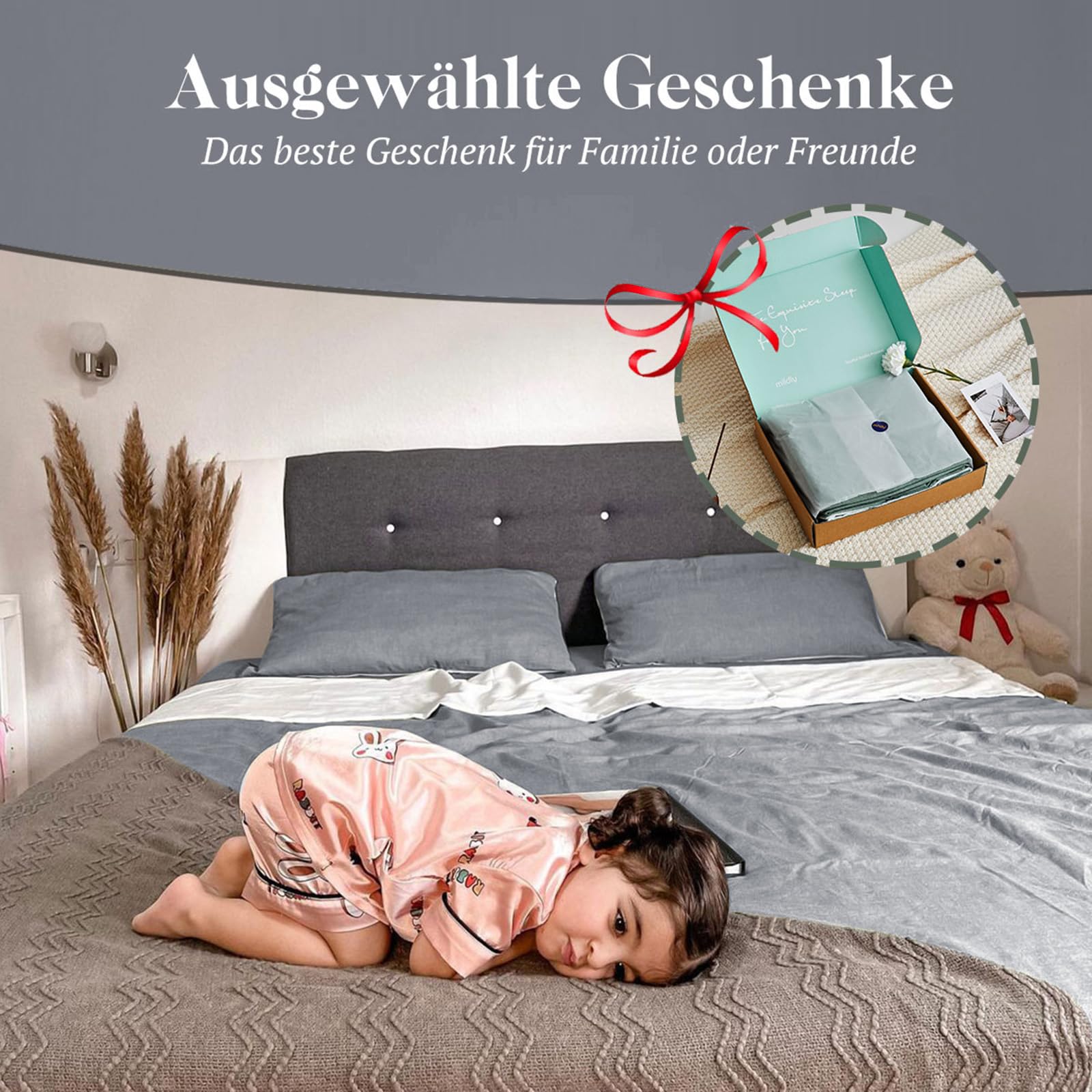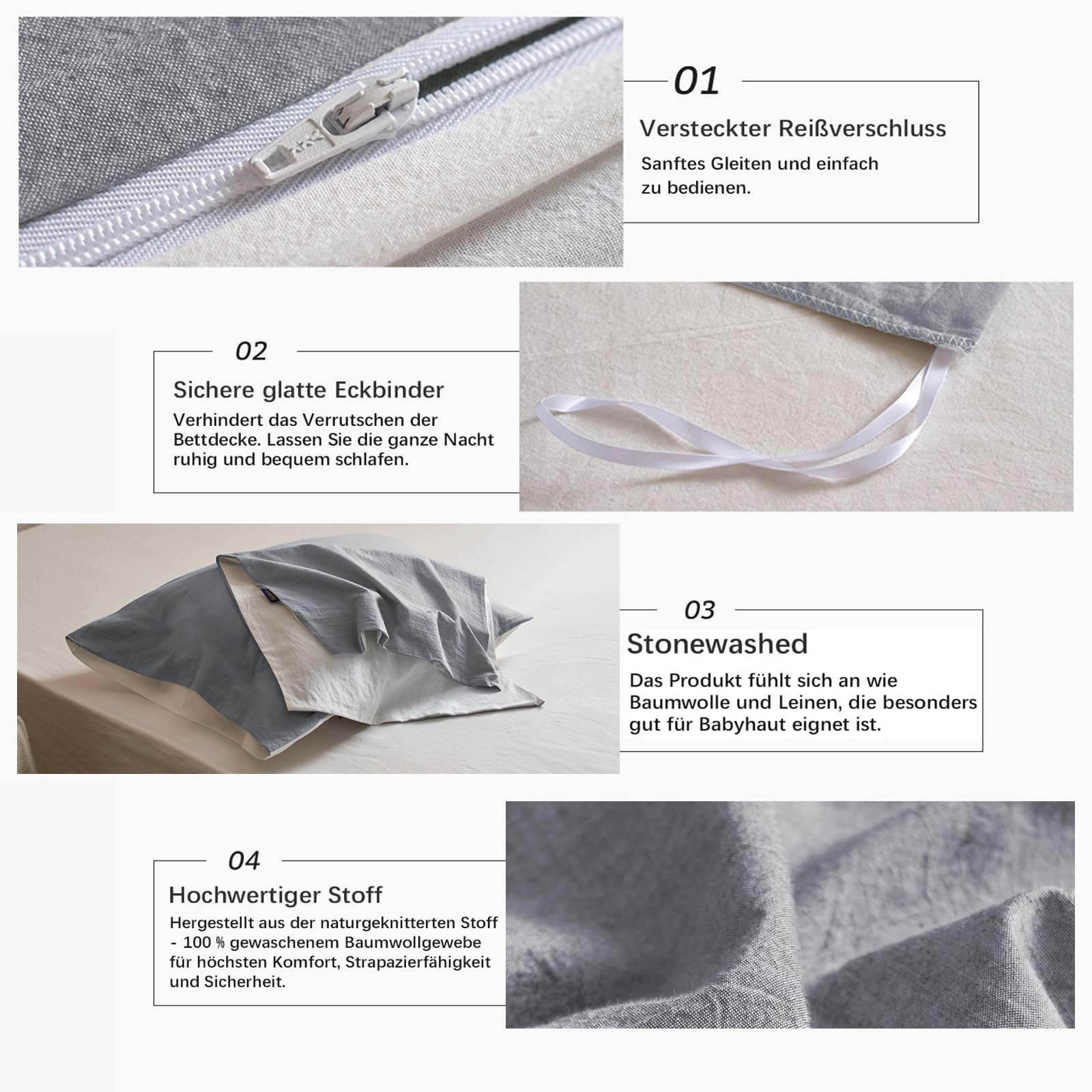 MILDLY Bettwäsche 135 x 200 cm, BettwäscheSets aus Baumwolle, dunkelgrau, 2teilig, mit Reissverschluss, ähnlich wie Stone WashedLeinen und inklusive 1 Bettbezug und 1 Kissenbezug 80 x 80 cm