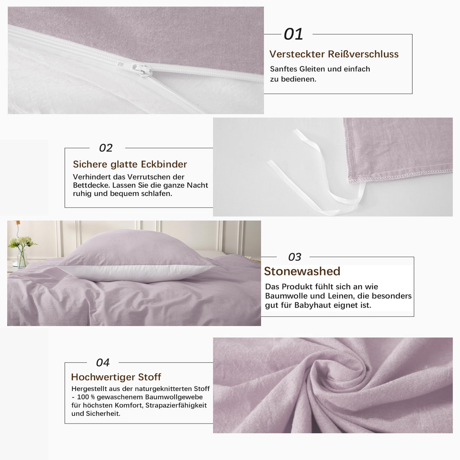 - 【Verdeckter Reissverschluss und 4 Eckbänder】 Mit dem Reissverschluss können Sie die Bettdecke einfach anbringen und entfernen. Knopfbezüge aus Holz sind haltbarer und weicher. Vier Eckbänder sichern Ihre Bettdecke unter der Tagesdecke.