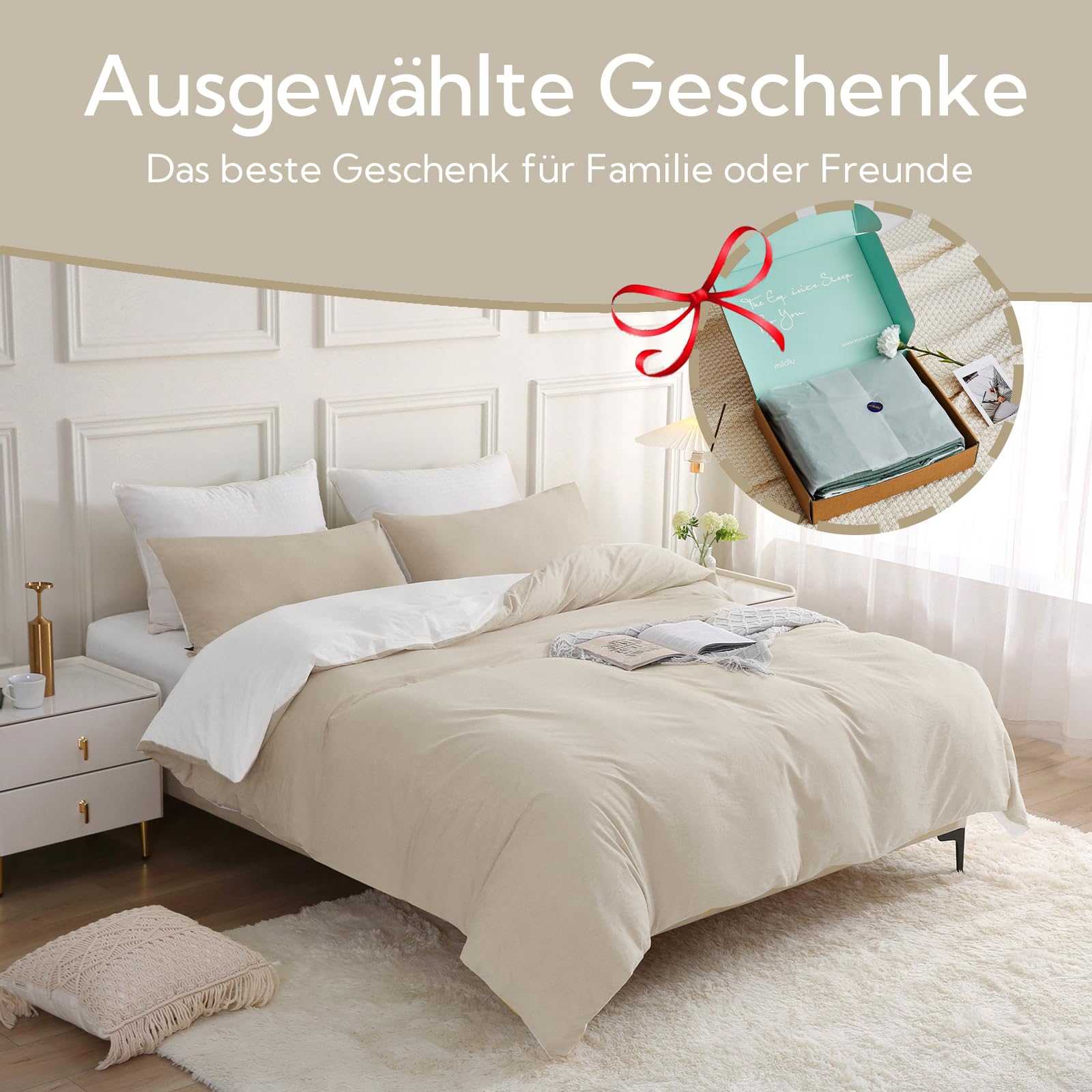 MILDLY Bettwäsche 220x240 Baumwolle, Bettwäsche-Sets Kamel Beige 3 Teilig mit Reissverschluss Ähnliche Textur wie Stone Washed Leinen und Enthält 1 Bettbezug und 2 Kissenbezug 80x80