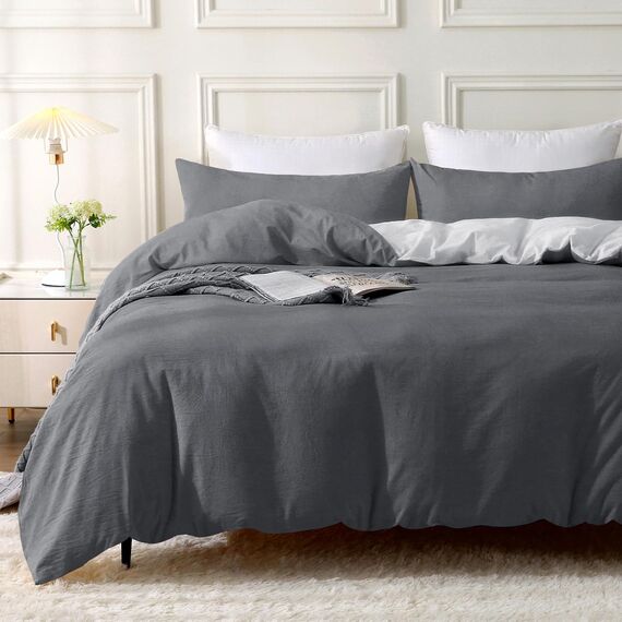 - 【Natürliches Design】 Dieser Bettbezug besteht aus 100 % gewaschener Baumwolle, der Stoff wurde durch ein spezielles Verfahren verarbeitet und die Oberfläche des Stoffes hat ein leichtes natürliches Faltengefühl. Das Crinkle-Finish sorgt für einen lässigen Vintage-Look. Behält die Faltenstruktur ohne Bügeln bei.