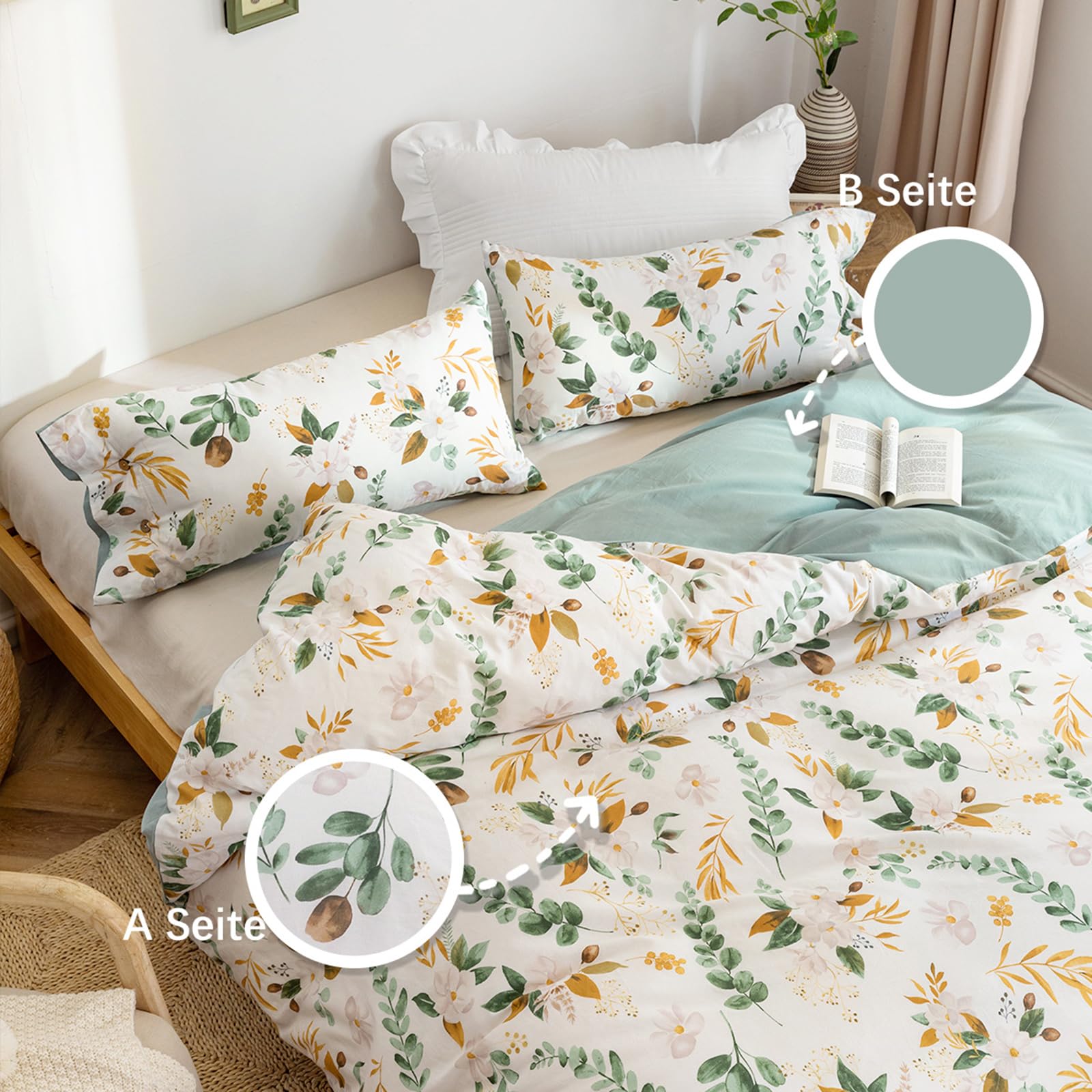 MILDLY Bettwäsche 220x240 Baumwolle, Bettwäsche-Sets mit Pflanzenmuster, Reissverschluss, ÖkoTex Zertifiziert, Enthält 1 Bettbezug 220x240 und 2 Kissenbezug 80x80, Grün(Kaelyn)
