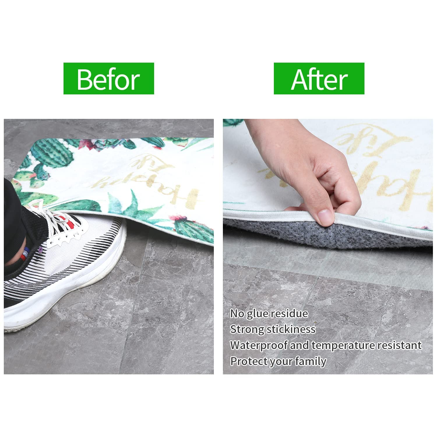 Das MILEQEE Doppelseitige Klebeband ist der ideale Helfer für zu Hause, Büro oder Schule. Dank des hochwertigen PE-Materials und der extra starken Gewebefläche haftet es fest auf rauen oder glatten Oberflächen und eignet sich für leichte oder schwere Gegenstände. Mit seiner hohen Klebkraft ist es vielseitig einsetzbar, zum Beispiel für Teppiche, Kühlschränke, Bilderrahmen, Autoteppiche oder Poster. Das Klebeband ist rückstandsfrei entfernbar und hinterlässt keine Klebereste, was es besonders pflegeleicht macht. Es lässt sich einfach abreissen und auftragen, achten Sie nur darauf, die Oberfläche vorher zu reinigen und zu trocknen. Die Abmessungen des Klebebands betragen 1.77'' x 65.6FT und es ist in klarer Klebstofffarbe mit weissem Abdeckpapier erhältlich. Es ist wasserfest, kompatibel mit verschiedenen Materialien wie Keramik, Glas, Metall, Kunststoff, Stein, Holz oder Karton und entspricht den Amazon-Kategorien ADHESIVE_TAPES und Klebeband.