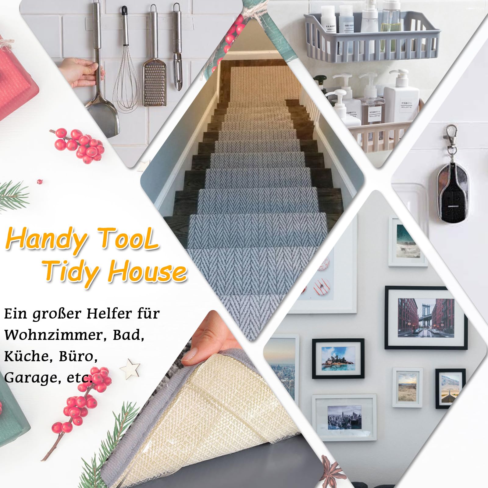 MIMEIMIAI Multifunktionales Magic Nano Tape ist ein vielseitiges Werkzeug, das in vielen Anwendungen in Ihrem Haus verwendet werden kann. Dieses Wandband ist praktisch, wenn Sie das Haus mit Fotos oder Gemälden dekorieren möchten. Verwenden Sie das doppelseitige Klebeband, um einige Ornamente für den Urlaub zu kleben, halten Sie den Teppich fest, damit Kinder und Haustiere frei herumlaufen können, kleben Sie das Telefon an die Wand und schauen Sie sich Videos an, während Sie kochen oder Ihre Zähne putzen. Wenn Sie Probleme haben, kleine Gegenstände im Haus zu finden, schneiden Sie einen Klebestreifen als Halter aus, seien Sie kreativ und lassen Sie das magische Klebeband helfen, Platz zu sparen und Ihre Räume organisiert und ordentlich zu halten. Das klebrige doppelseitige Klebeband hat einen starken Klebstoff, aber denken Sie daran, die Oberfläche vor dem Auftragen immer zu reinigen. Es funktioniert am besten mit sauberer, trockener, glatter Oberfläche. Dieses doppelseitige Klebeband ist einfach zu verwenden und zu entfernen, hinterlässt keine Rückstände und beschädigt die Oberfläche nicht. Sie können das Band waschen und wiederverwenden, aber die Viskosität dieses Bandes nimmt nach jeder Wiederverwendung allmählich ab. Und denken Sie daran, es immer zuerst auf einer kleinen Fläche auszuprobieren. Es wird nicht empfohlen, es auf einer pulverbeschichteten Wand oder einem leicht zerrissenen Tapeten zu verwenden.