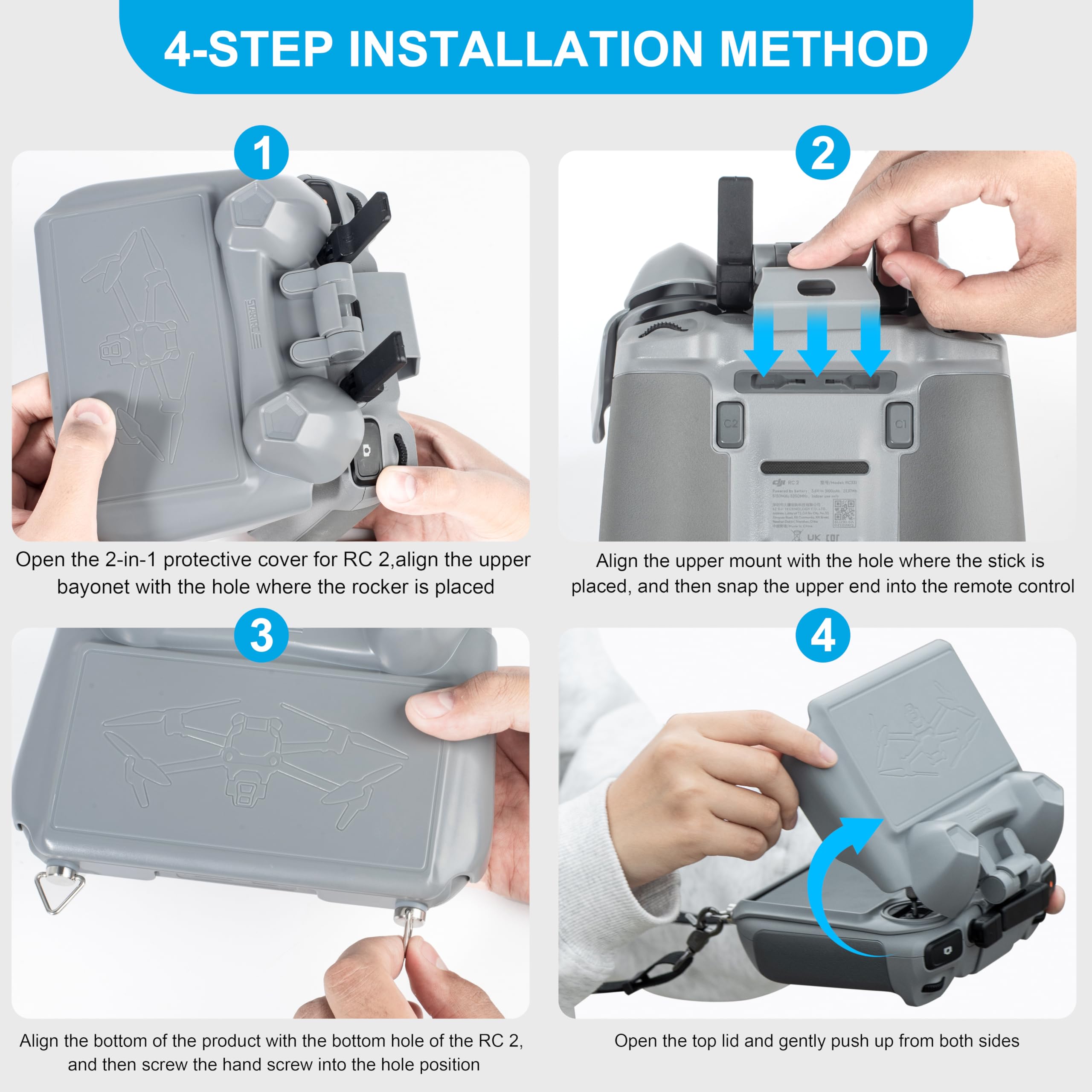- 【3-in-1-Funktionalität】Ein Zubehör, um drei Funktionen zu erfüllen. (Sonnenschutz für DJI RC2, Joystick-Schutz für DJI RC 2, Displayschutzfolie für DJI RC 2)