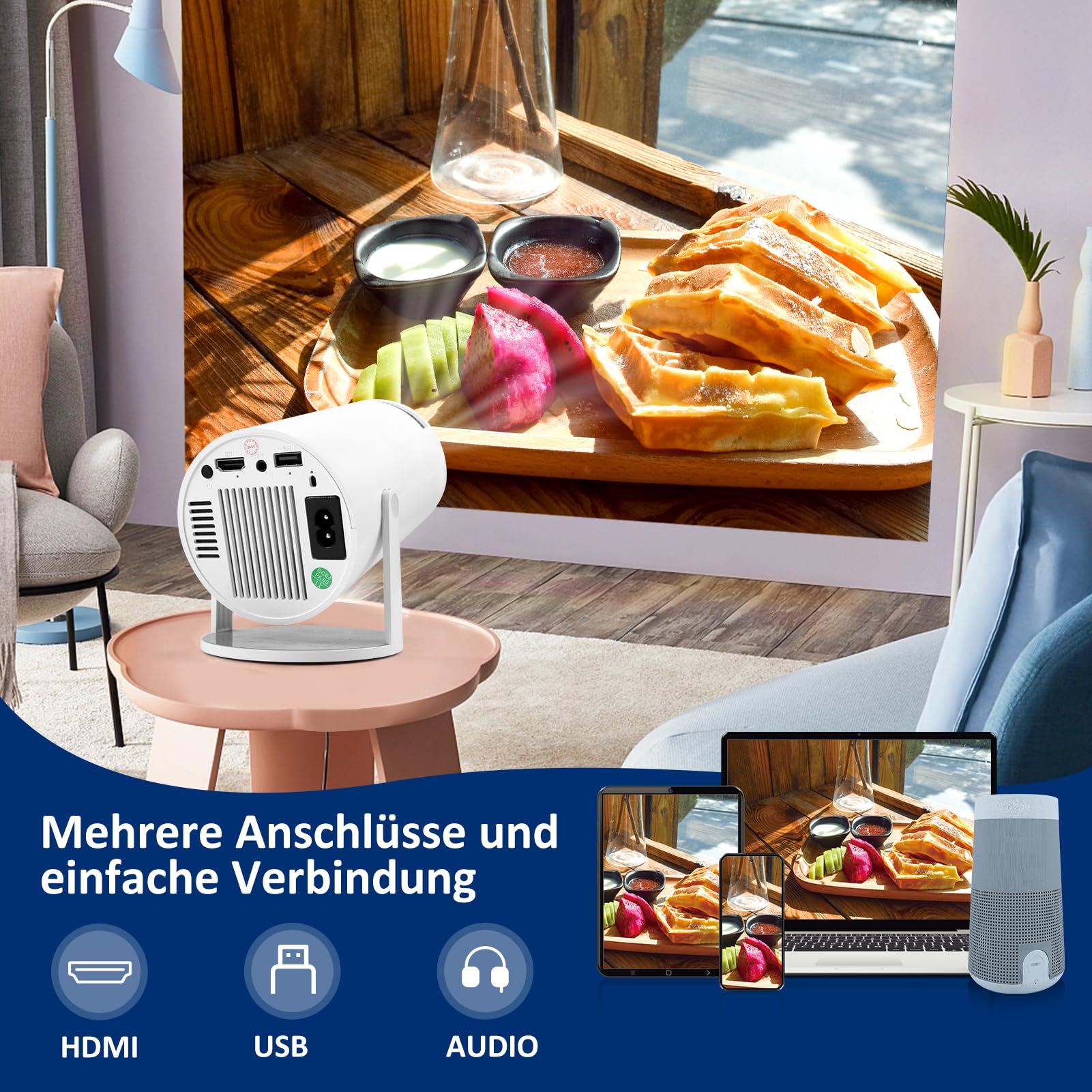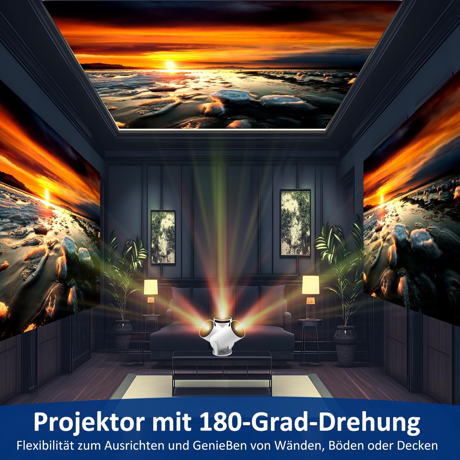 Mini Beamer 4K Unterstützt Android 11,Beamer Handy Outdoor 180°Drehbarer,Mini Projector 5G WiFi 6 BT 5.0,130 Zoll Geeignet für Telefon/PC/HDMI USB,Smart Projector für Handy Phone/TV Stick/Laptop/HDMI