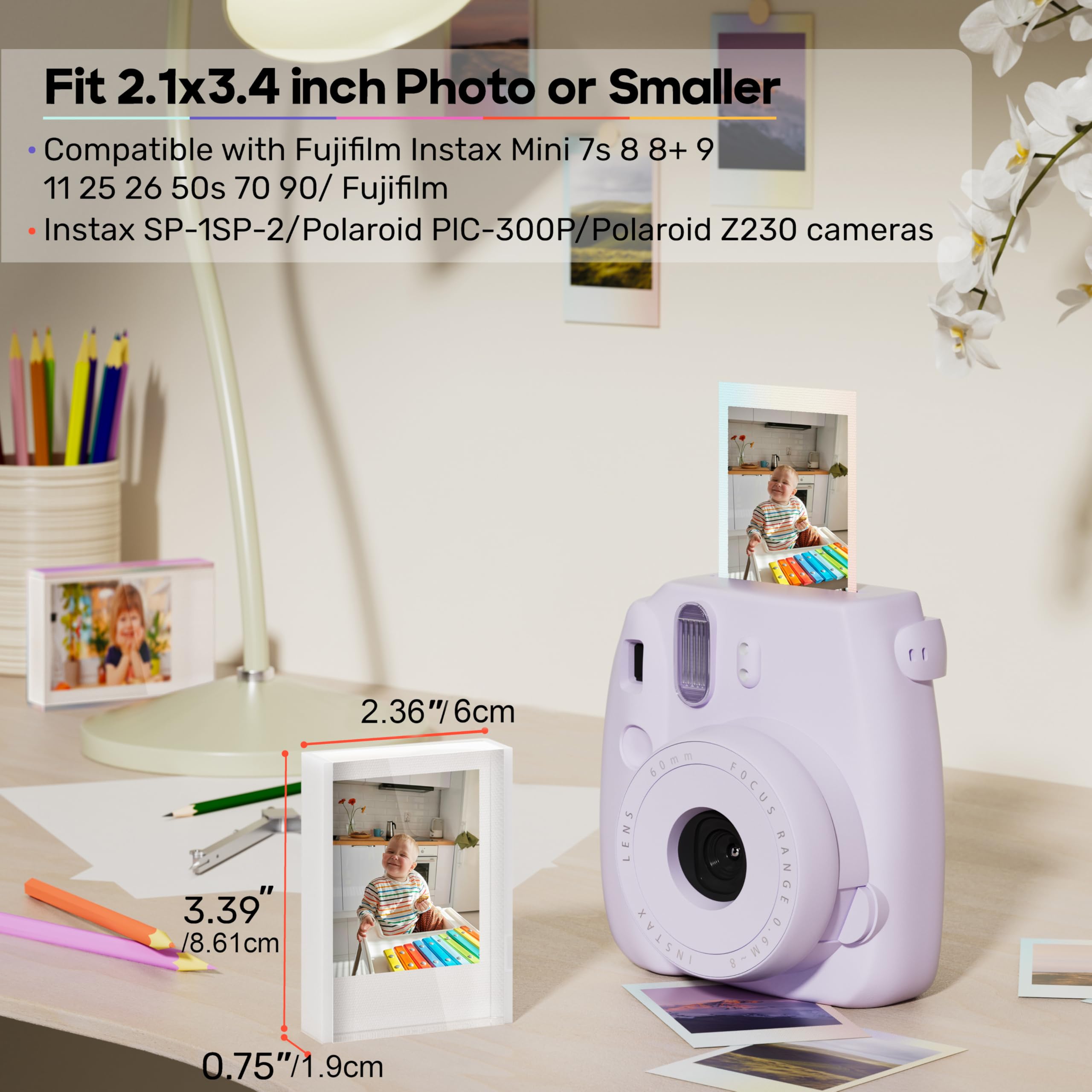 Mini Bilderrahmen für Fujifilm Instax Mini Polaroid Film,Acryl Fotorahmen Klein für 5,4 x 8,6cm Foto,Polaroid Rahmen Sofortbild Halter,Geschenk zum Valentinstag oder Geburtstag Jahrestag 3 Stück