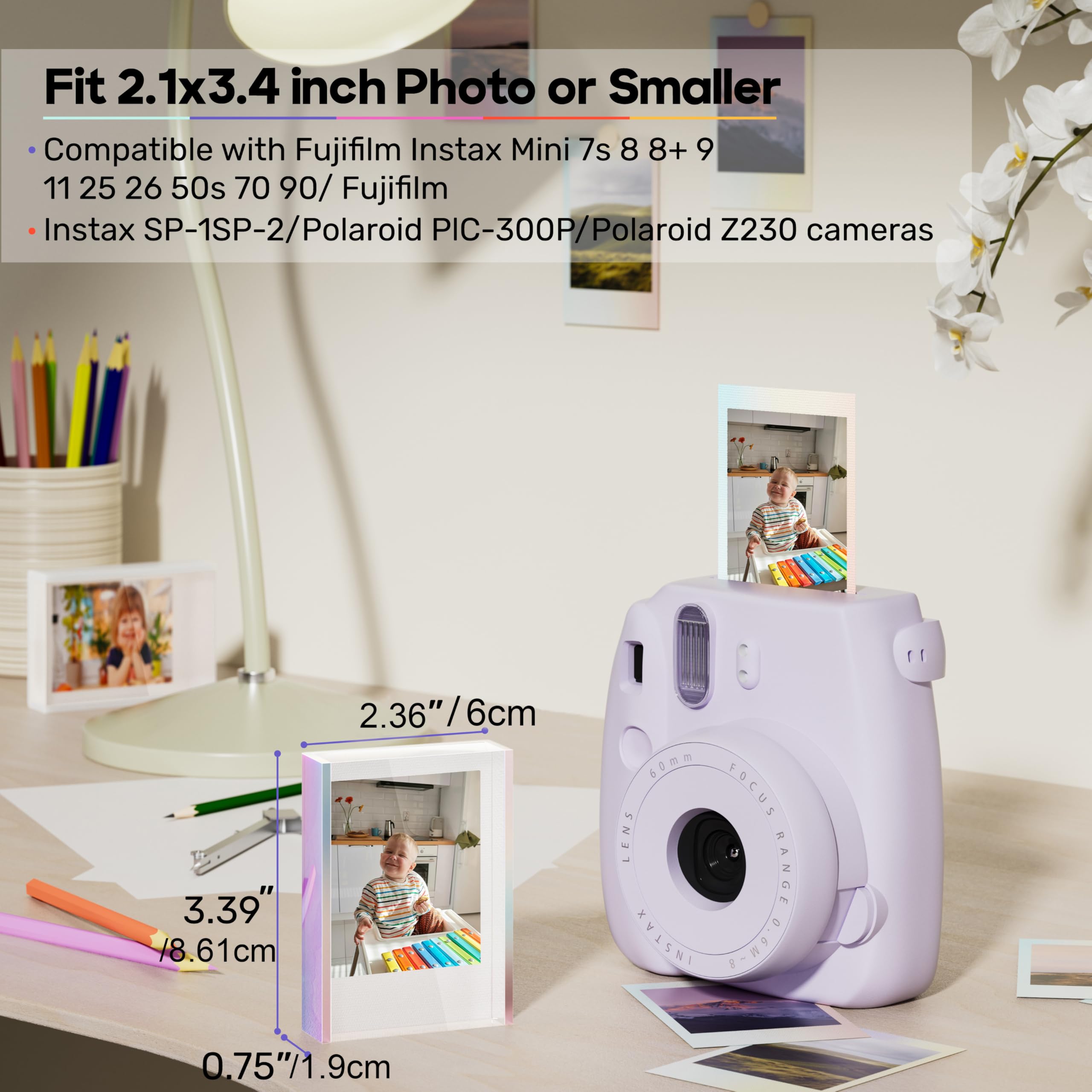 Mini Bilderrahmen für Fujifilm Instax Mini Polaroid Film,Acryl Fotorahmen Klein für 5,4 x 8,6cm Foto,Polaroid Rahmen Sofortbild Halter,Geschenk zum Valentinstag oder Geburtstag Jahrestag 3 Stück
