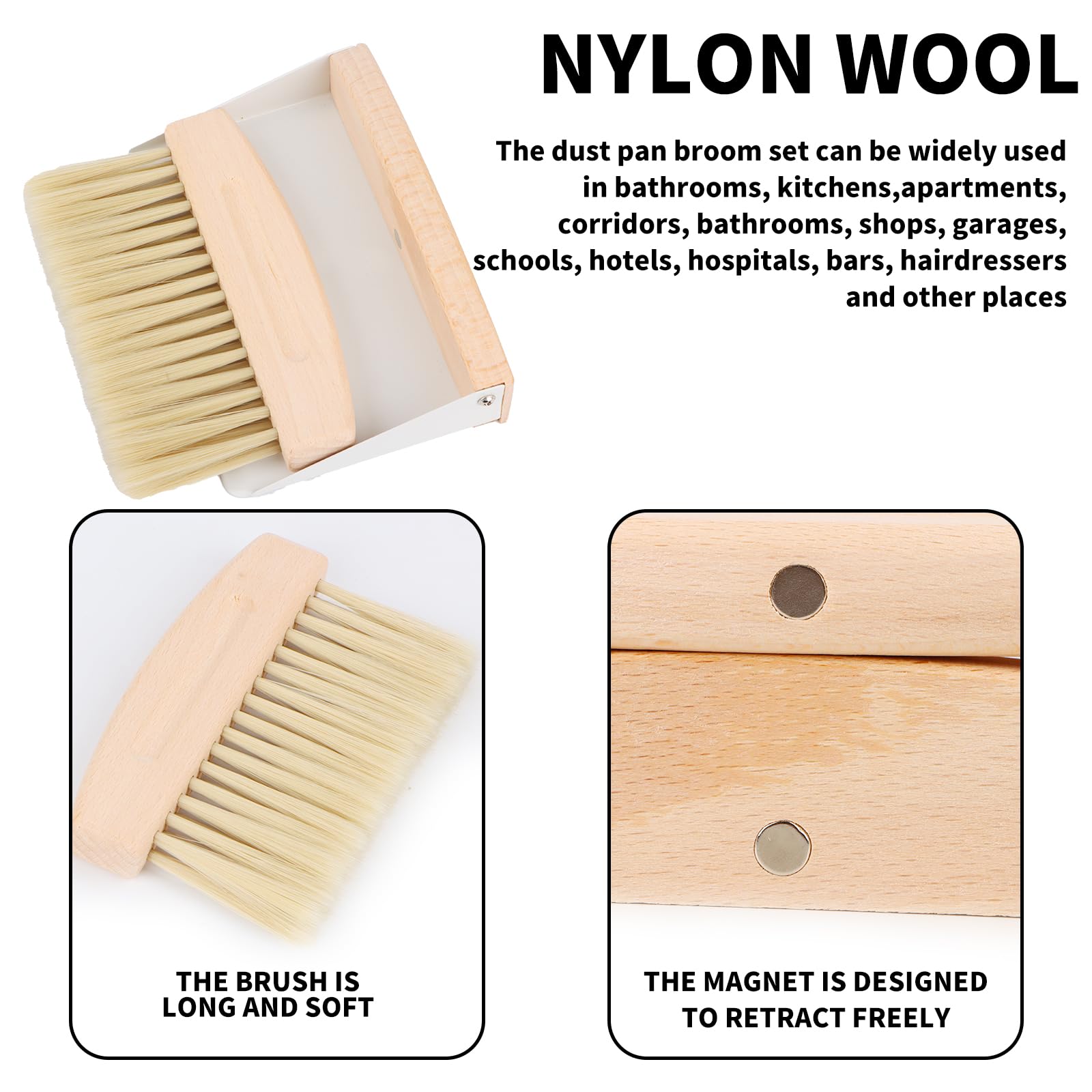 Die Produktwelt von Wvu & Wvo ist vom täglichen Leben inspiriert. Als Marke bieten wir klare und einfache Lösungen für den Alltag, die Ihnen das Leben leichter machen.Wvu & Wvo Tischbesen mit Kunststoffborsten - Erleichtern Sie sich die Arbeit und machen Sie die Welt saubererProduct World ist vom täglichen Leben inspiriert. Als Marke bieten wir klare und einfache Lösungen für den Alltag, die Ihnen das Leben leichter machen.Die Verwendung von Holz und Metall ist nicht nur optisch ansprechend, sondern sorgt auch für eine langfristige und nachhaltige Nutzung dieses praktischen Werkzeugs.Spachtel- und Besen-Set - Krümel oder Mehl lassen sich schnell, sauber und einfach per Hand von Esstisch, Schreibtisch, Bett, Arbeitsplatte oder Küche entfernen und mit dem Besen- und Besen-Set entsorgen.Das Spachtel- und Besen-Set lässt sich gut auf Campingausflüge mitnehmen und eignet sich auch hervorragend als Geschenk für den Weihnachtsmann!Material: BuchenholzStiel: BuchenholzBürste: NylonwolleSchaufel: MetallGrösse des Besens: 14,9 x 9 cmUmfang der Lieferung1 x Tisch-Handfeger1 x SpatelVorteil: Dank des eingebauten Magneten lösen sich Spatel und Bürste auch beim Ablegen nicht voneinander.Qualitätsgarantie:Wir bemühen uns, Ihnen den bestmöglichen Service zu bieten.Bitte zögern Sie nicht, sich mit uns in Verbindung zu setzen, wenn Sie während des Gebrauchs Probleme haben. Wir werden Ihnen innerhalb von 24 Stunden antworten.