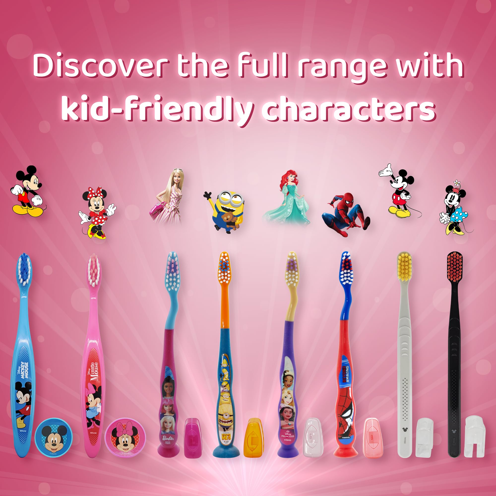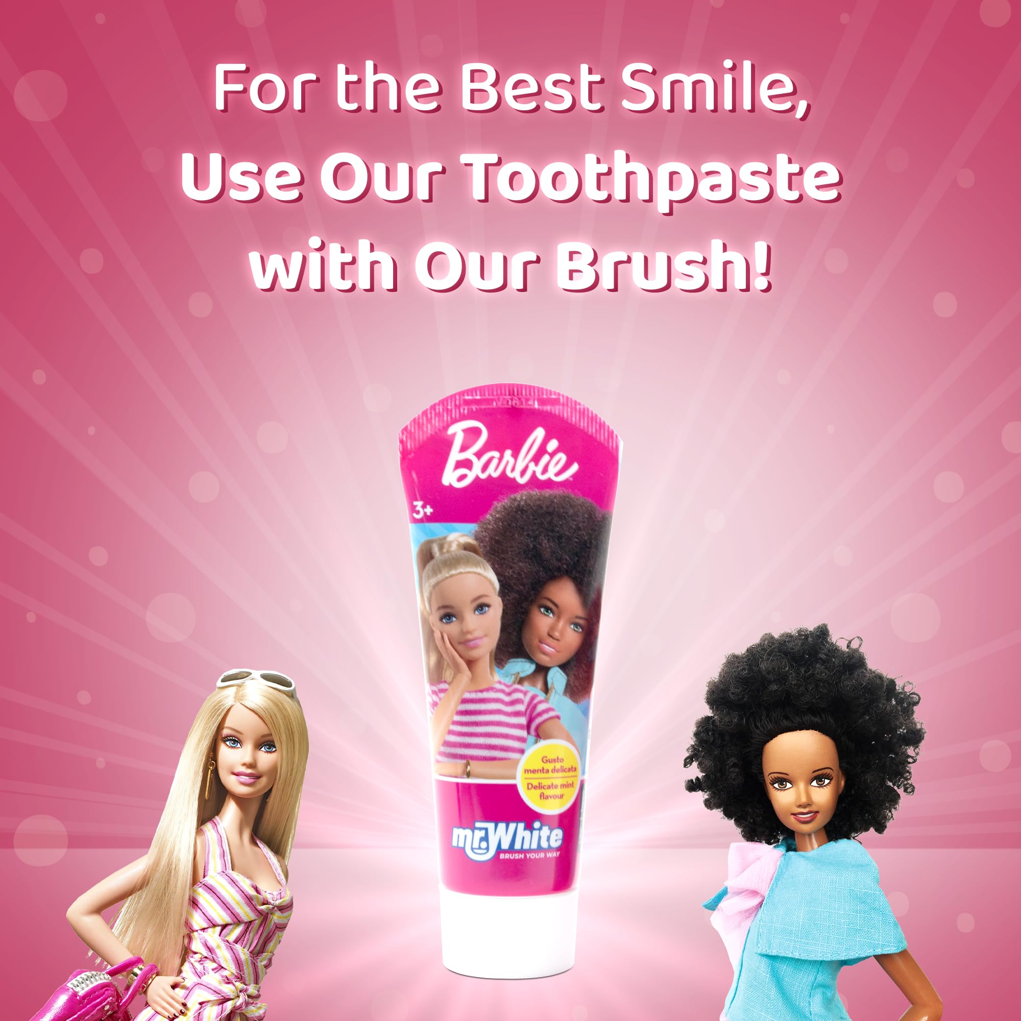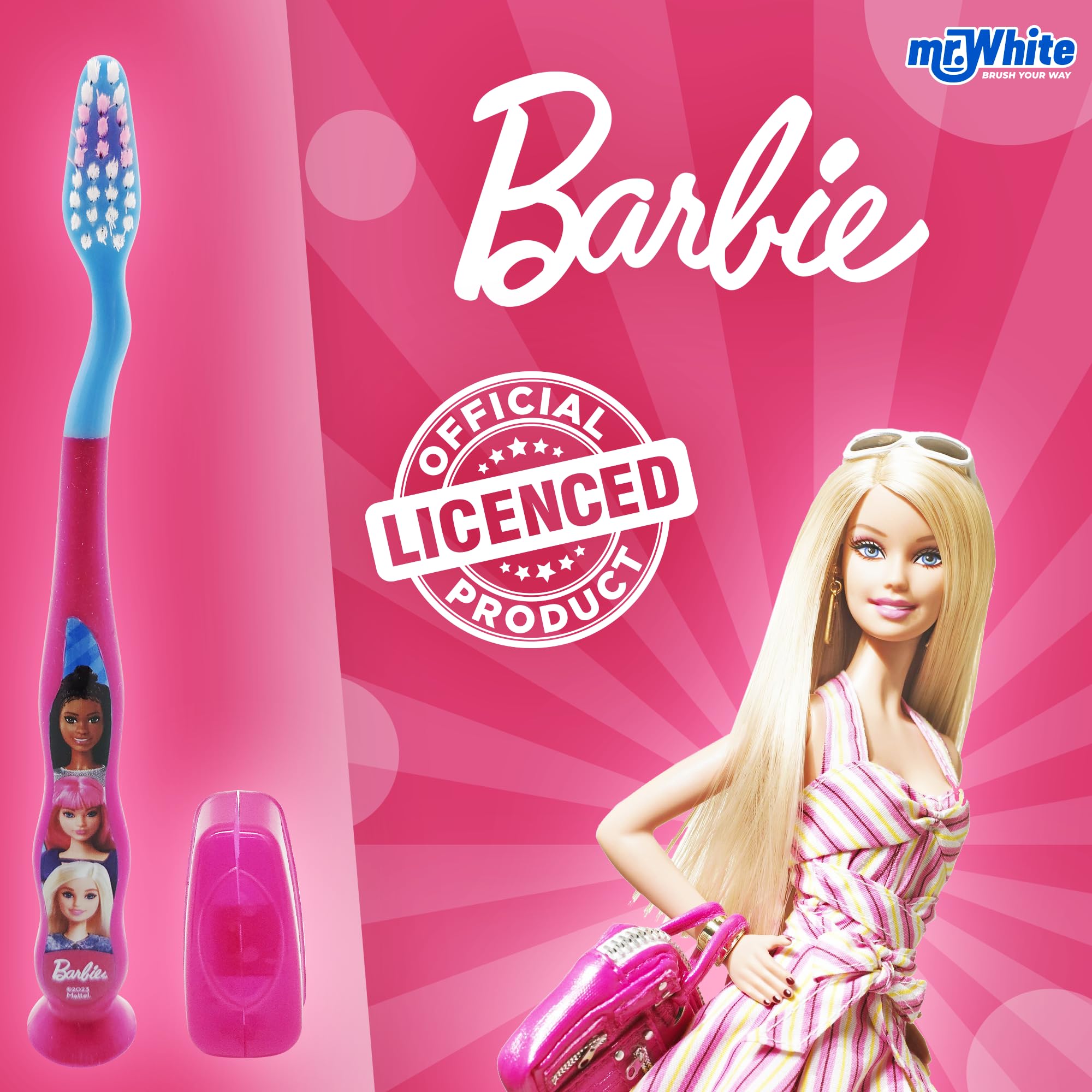 Barbie Zahnbürste mit Schutzkappe, Saugnapf, bequemem Griff und weichen Borsten für Kinder