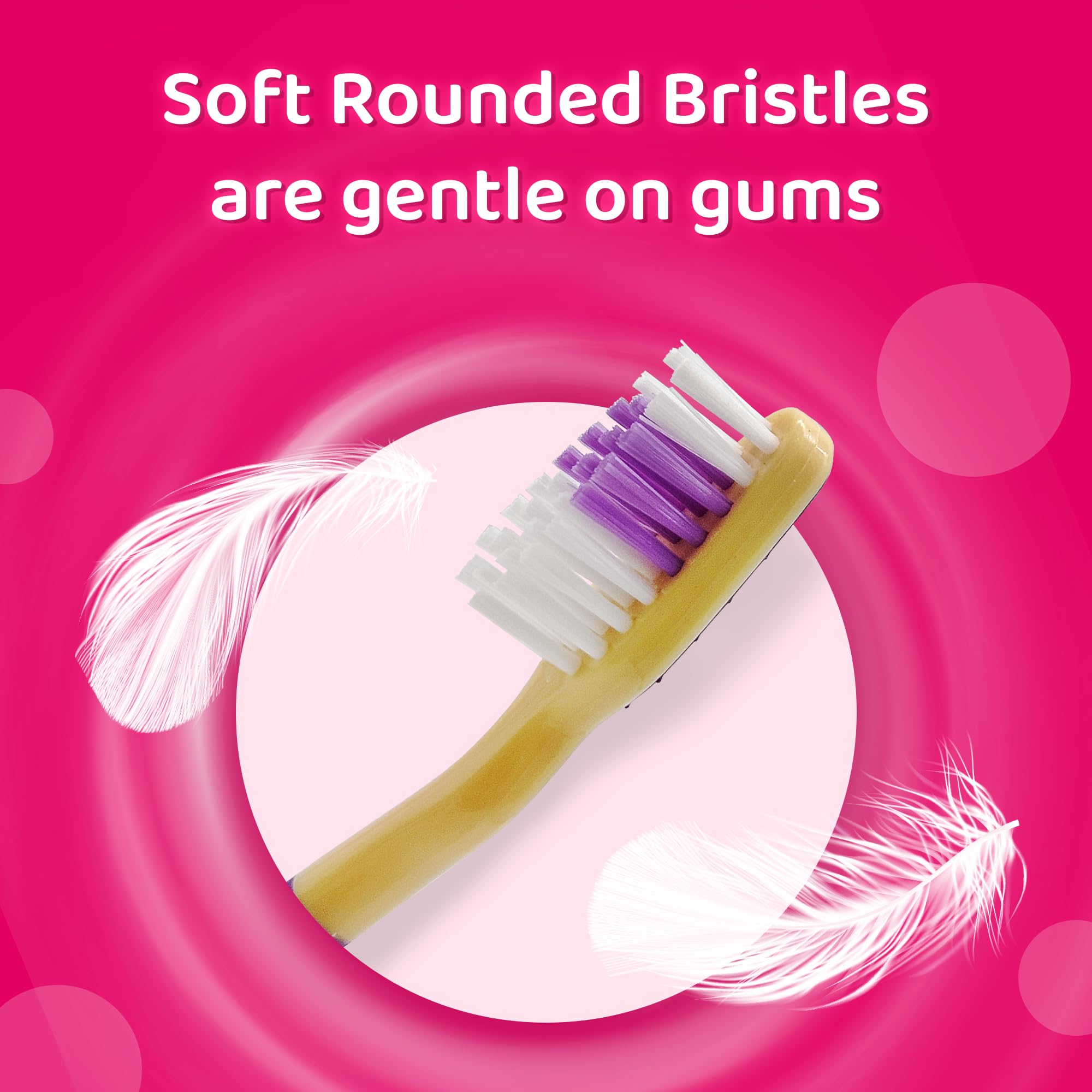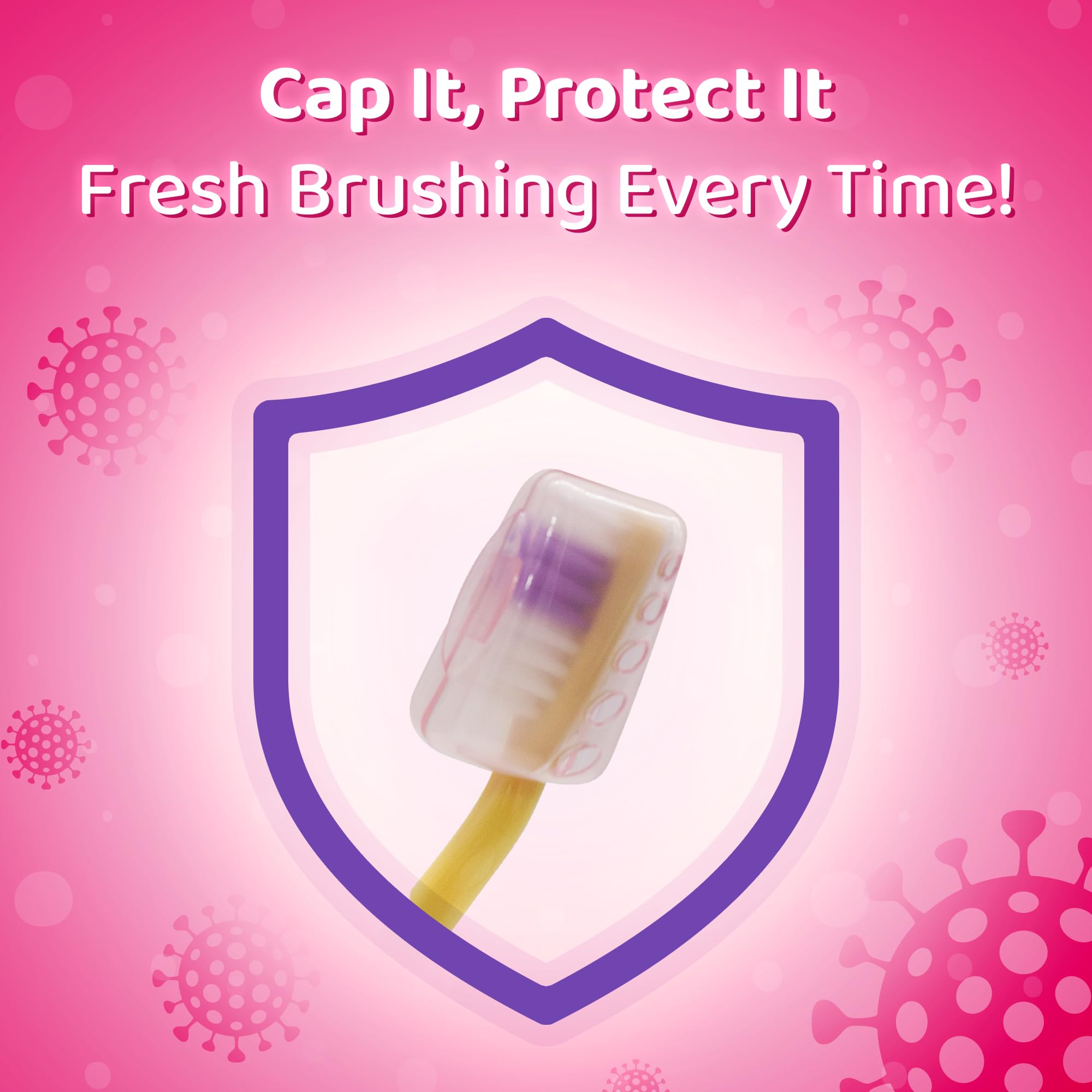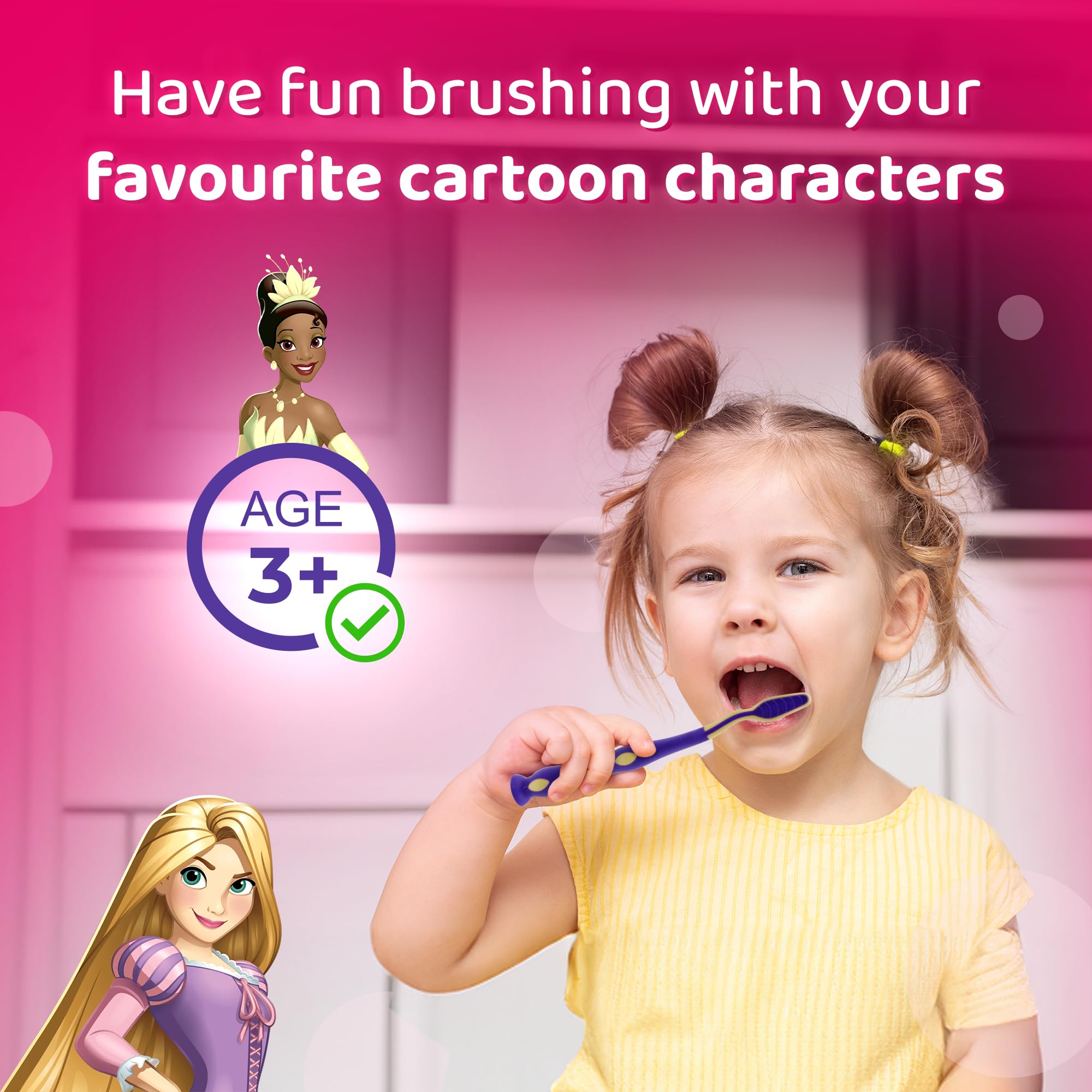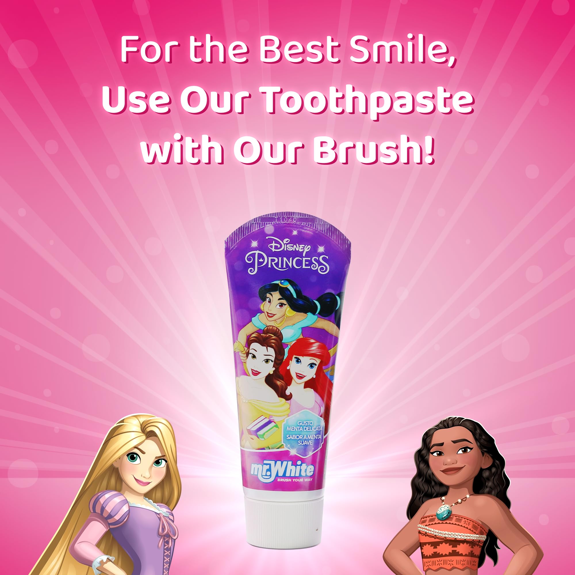 Mr. White Princess Kids Zahnbürste mit Schutzkappe, Saugnapf, bequemem Griff und weichen Borsten für Kinder - Pink
