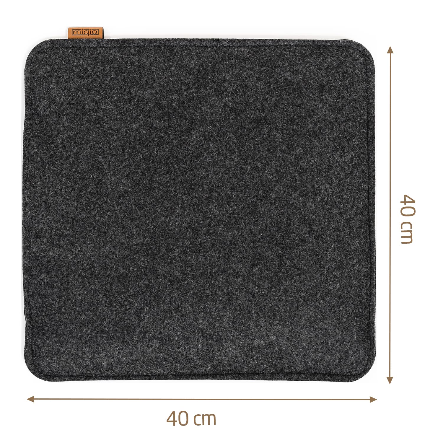 Mit Markenlabel aus echtem Leder - Farblich passend zu allen weiteren MIQIO Design-Produkten. Design und Qualität liegen in der DNA unseres Frankfurter Familienunternehmens. Das merkt man. In jedem Produktdetail. Jedes MIQIO Produkt wird aufwendig gefertigt. Gleichzeitig sind sie sehr stabil durch das verwendete Material. Die Sitzkissen gibt es im 2er-, 4er- oder 6er-Set. MIQIO Sitzkissen sind durch die Verwendung von 100% Polyester besonders formstabil und robust. Damit Du noch länger Freude an deinem MIQIO Produkt hast, empfehlen wir bei leichten Verschmutzungen Handwäsche. Aber auch Maschinenwäsche ist möglich. Von MIQIO gibt es auch Tischsets und weitere Produkte für Design-Liebhaber! Viel Spass mit deinen MIQIO Stuhlkissen! Inhalt Set: 2 Stuhlauflagen aus Filz in 40 cm Breite und 2 cm Dicke mit komfortabler Füllung und edlem Leder-Label.