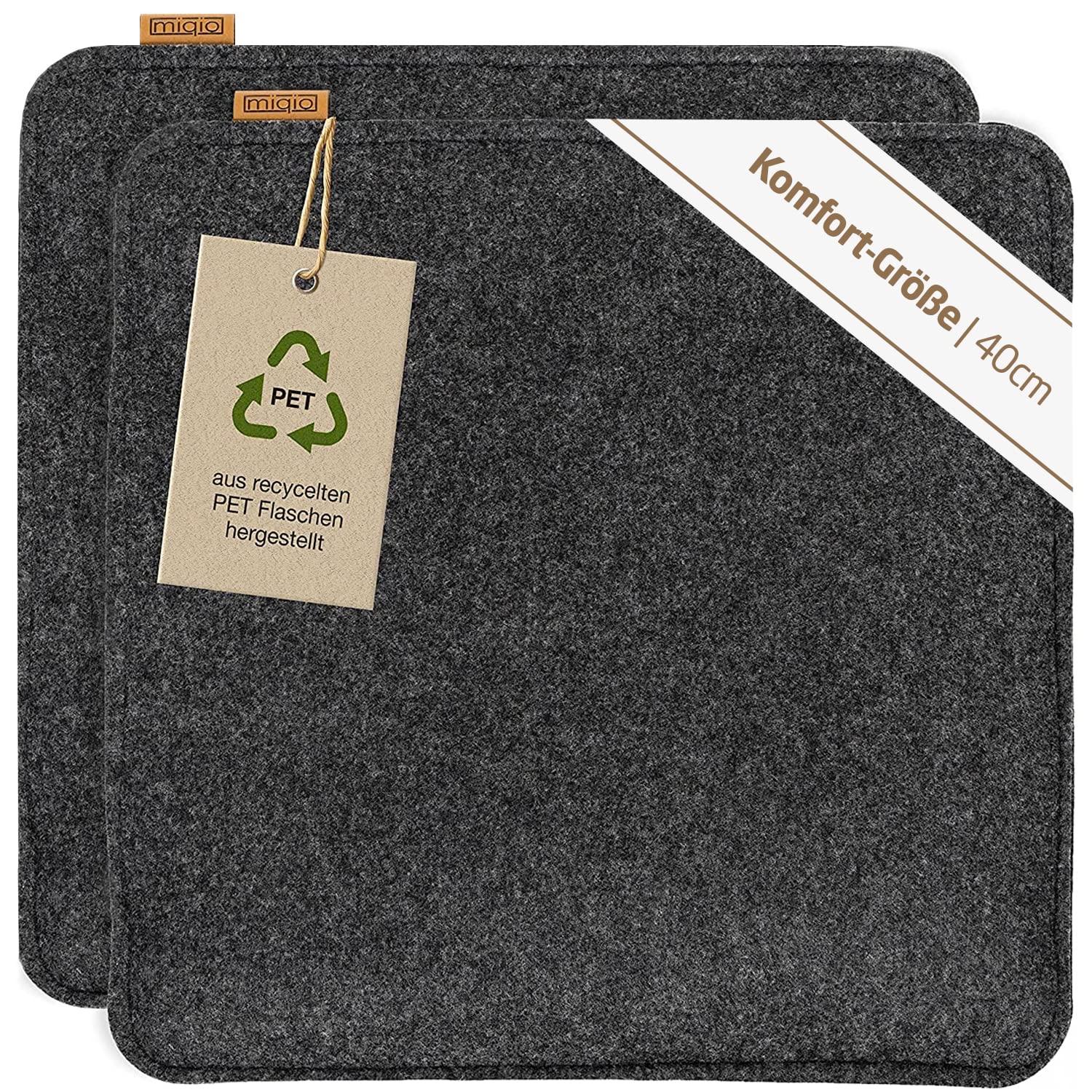 Miqio Design Sitzkissen Rechteckig aus Filz mit Antirutschnoppen | Nachhaltig aus recycelten PET Flaschen | 40x40 cm | 2er-Set | Waschbare Stuhlkissen rutschfest | Sitzauflage für Bank und Stuhl