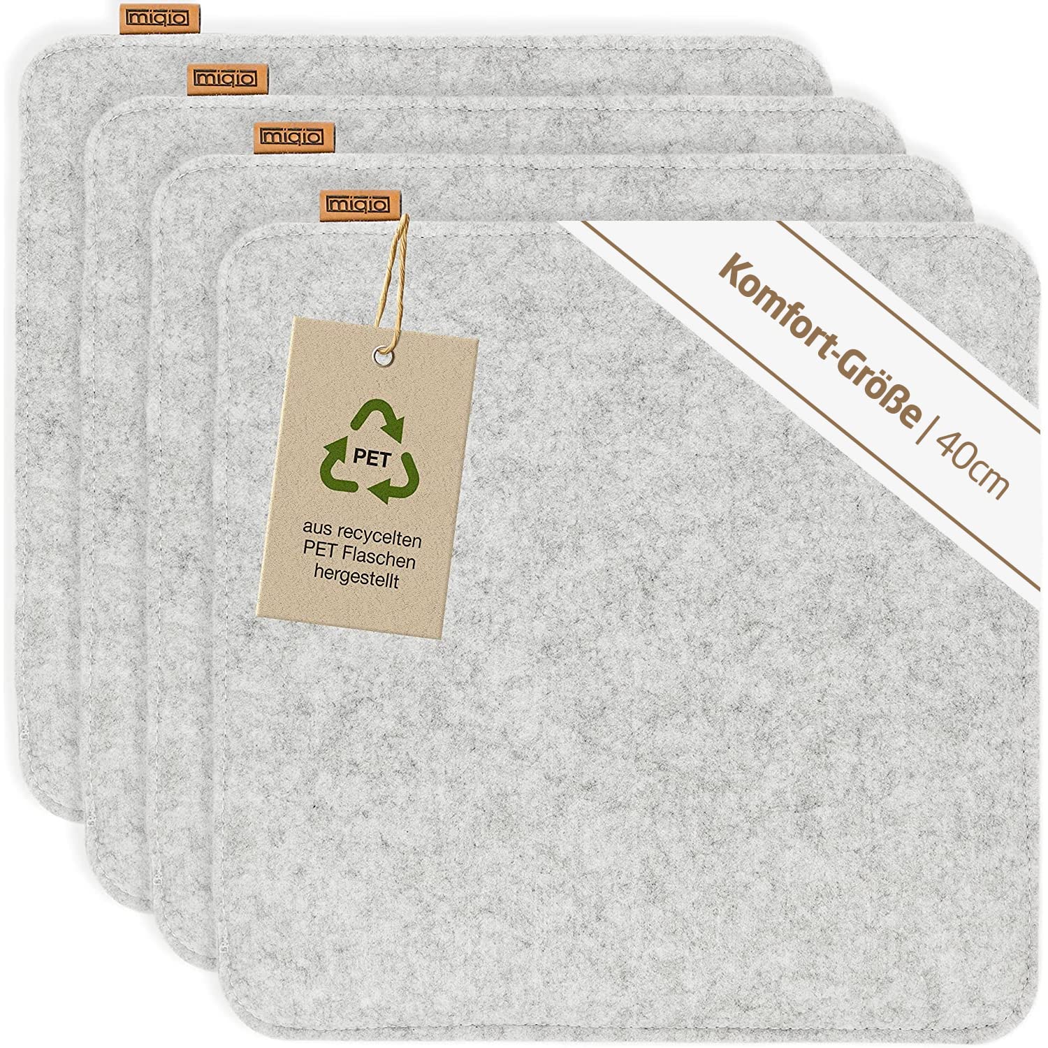 Miqio Design Sitzkissen Rechteckig aus Filz mit Antirutschnoppen | Nachhaltig aus recycelten PET Flaschen | 40x40 cm | 4er-Set | Waschbare Stuhlkissen rutschfest | Sitzauflage für Bank und Stuhl