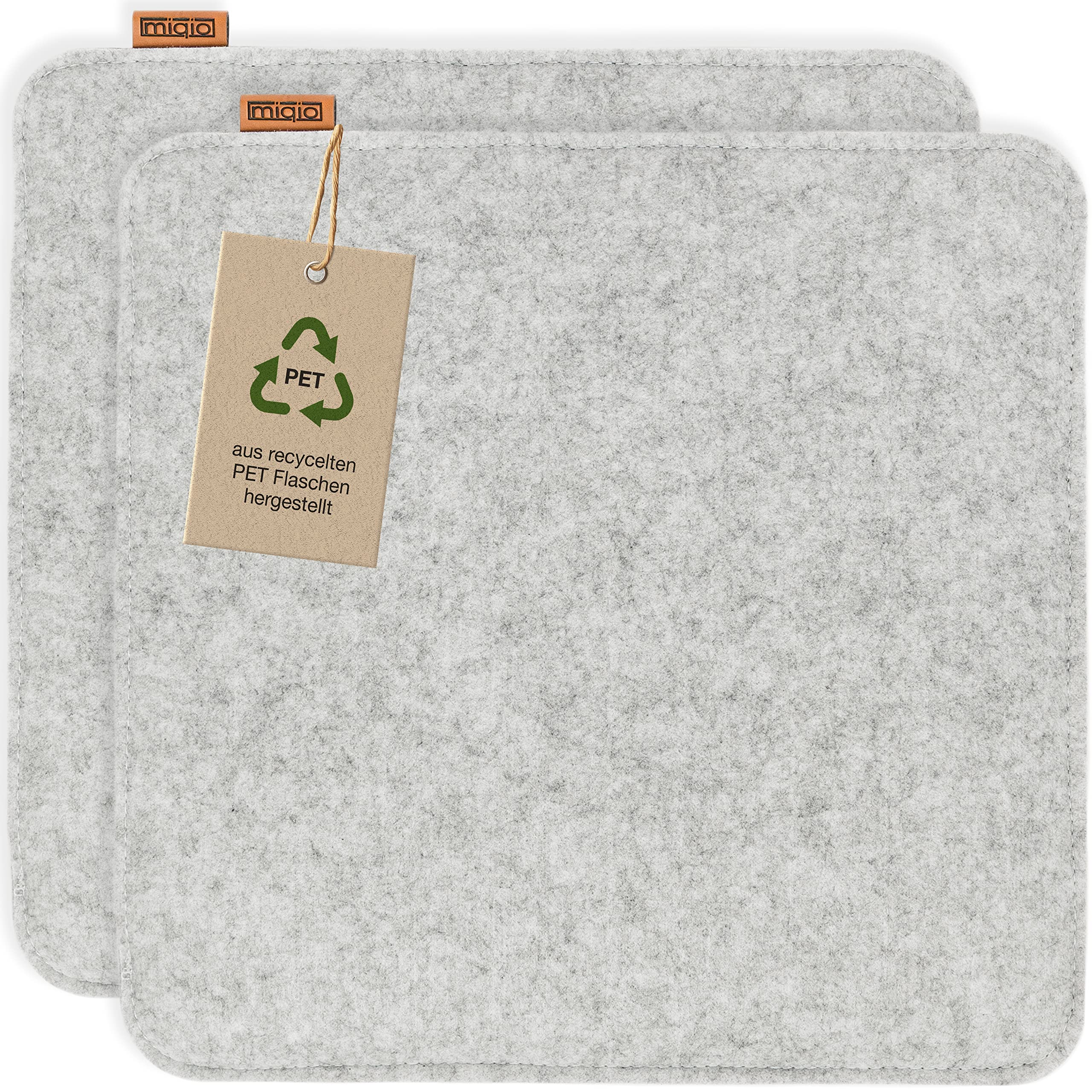 Miqio Design Filz Sitzkissen Eckig mit Antirutschnoppen | 35cm | 2er-Set | Indoor und Outdoor | Nachhaltig aus recycelten PET Flaschen | Waschbare Stuhlkissen rutschfest | Hellgrau
