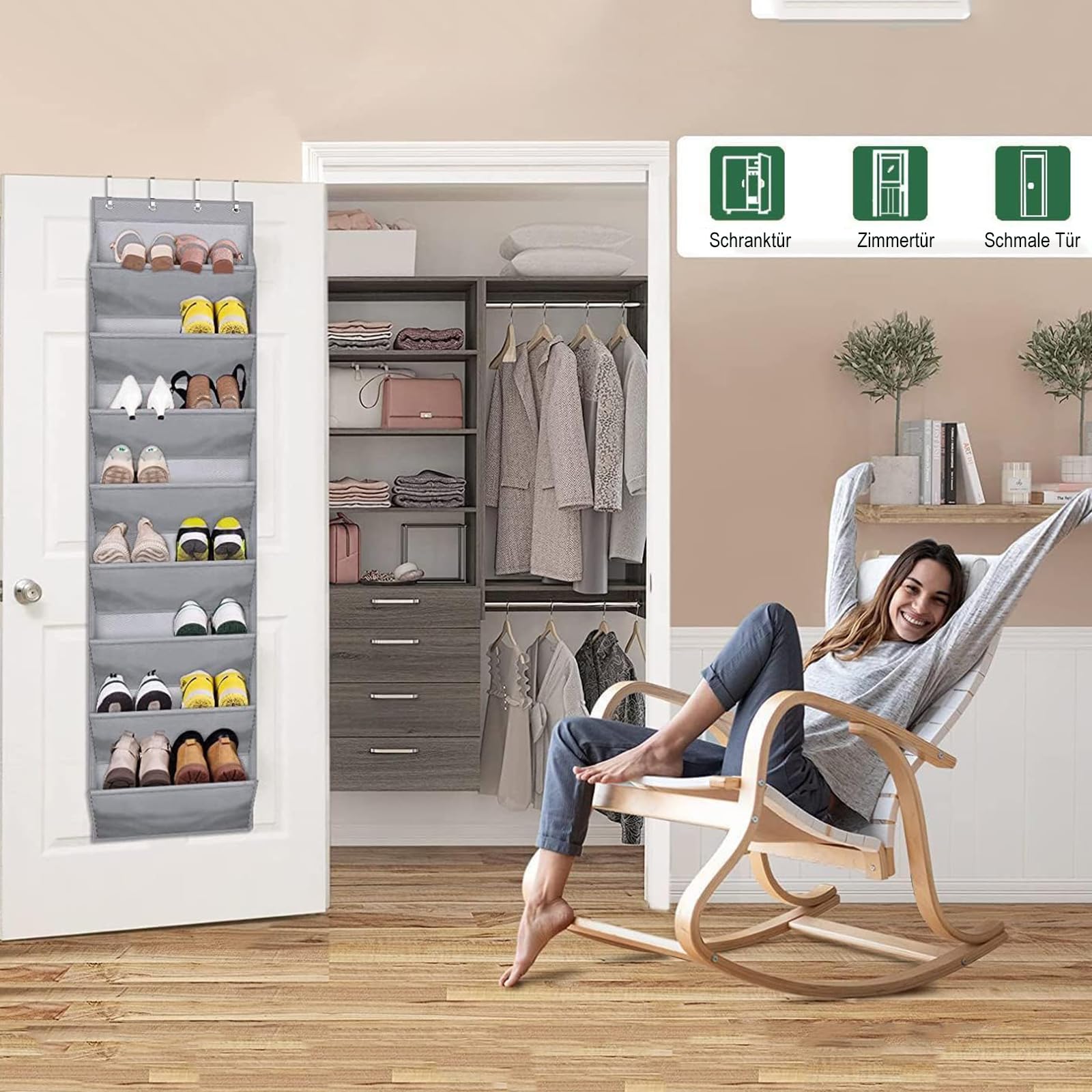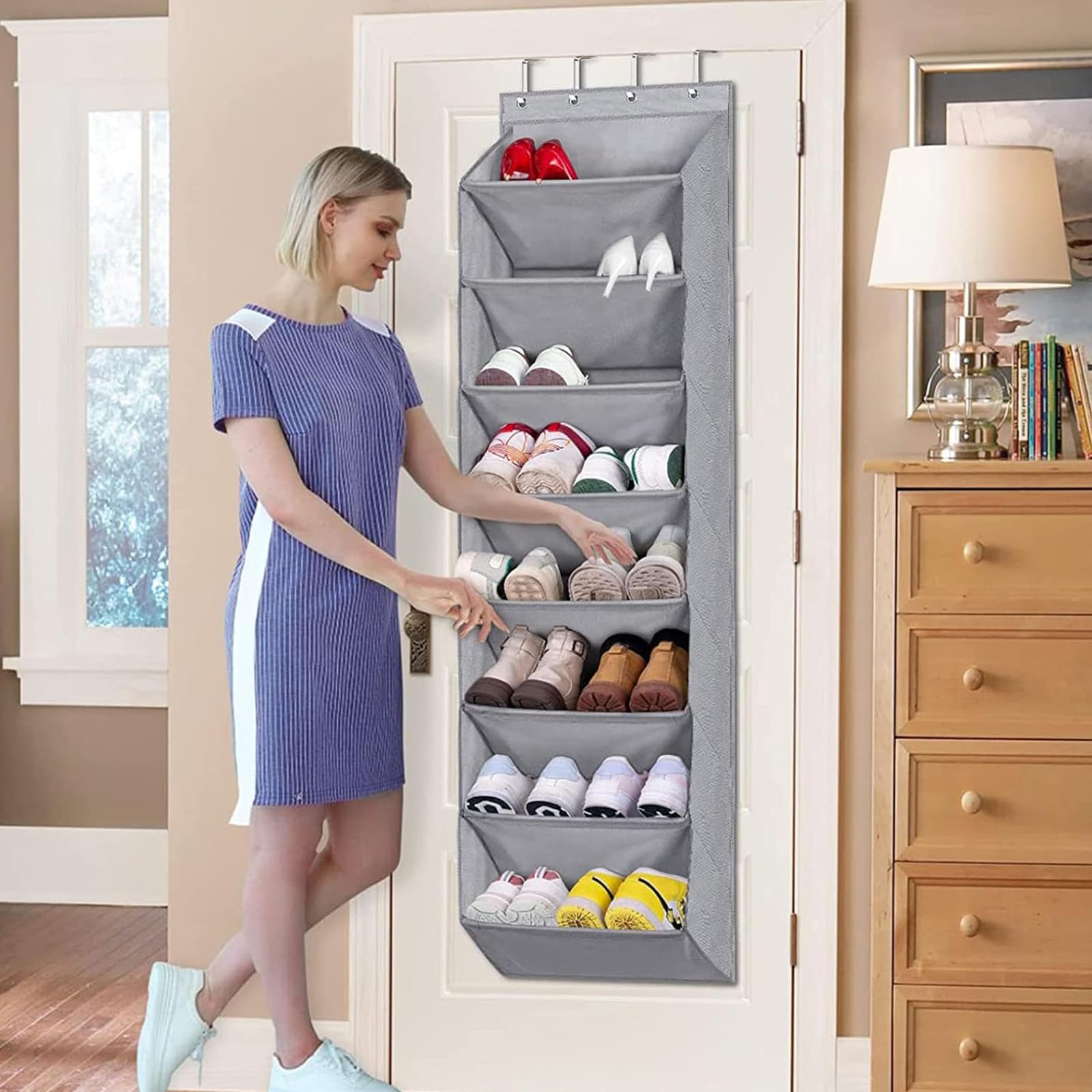 MISSLO Tür Schuhregal Schmal Schuhaufbewahrung Hängend mit 8 tiefen Taschen Passt 20-Paar Schuhorganizer, Kleiderschrank Schuhhalter für Tür Hängeorganizer, Grau
