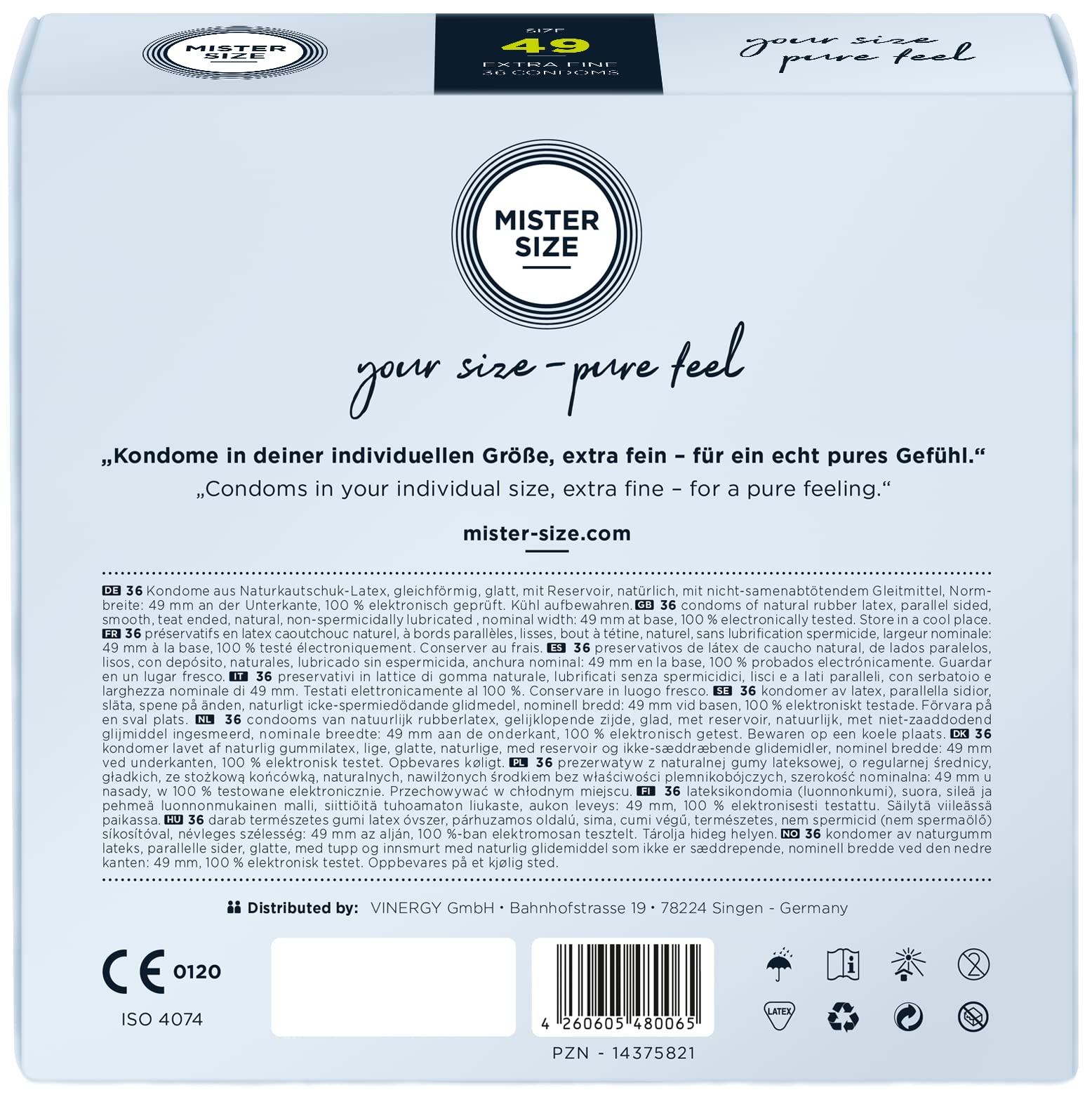 MISTER SIZE Kondome gefühlsecht hauchzart 49mm im 36er Pack/extra dünn, extra fein, extra feucht/aus 100% Naturkautschuk-Latex in deiner Grösse XS - S/natural feeling 36er Packung