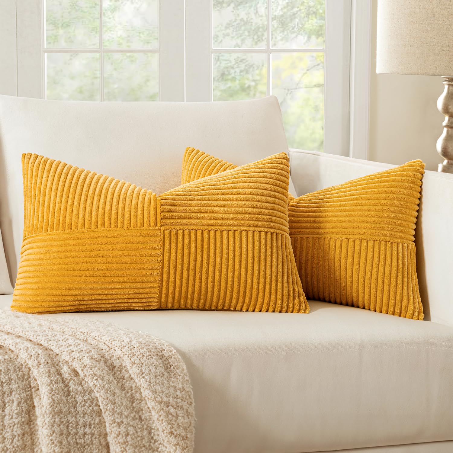 MIULEE 2er Set Herbst Kissenbezug 30x50cm Gelb Kissenhülle Kissenbezüge Sofakissen Dekokissen Boho Couchkissen Kord Dekorative Zierkissenbezug für Sofa