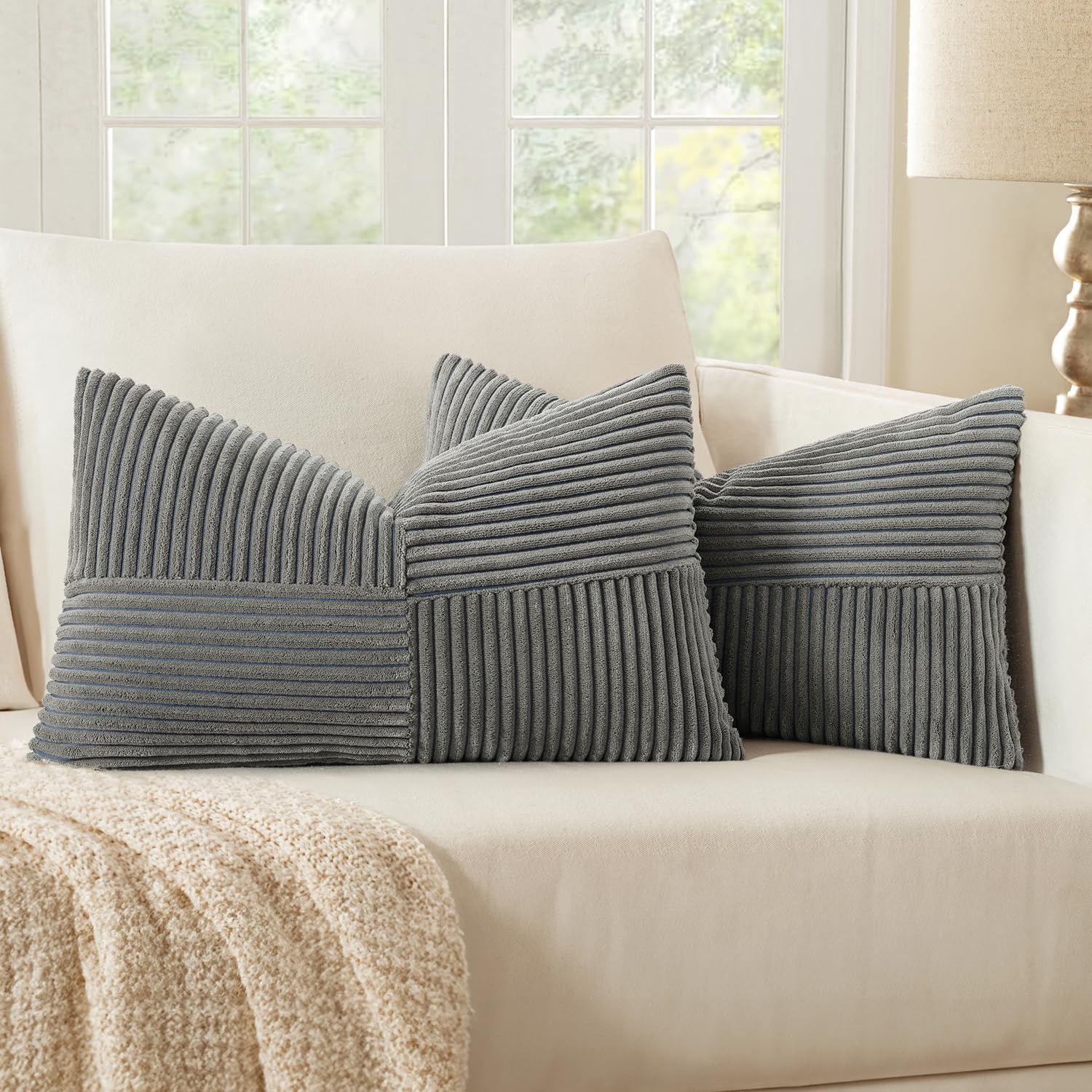 MIULEE 2er Set Kissenbezug 40x80cm Dunkelgrau Kissenhülle Kissenbezüge Sofakissen Dekokissen Boho Couchkissen Kord Dekorative Zierkissenbezug für Sofa