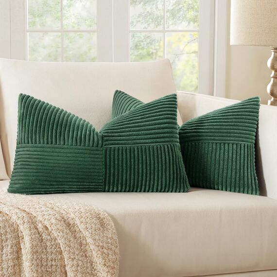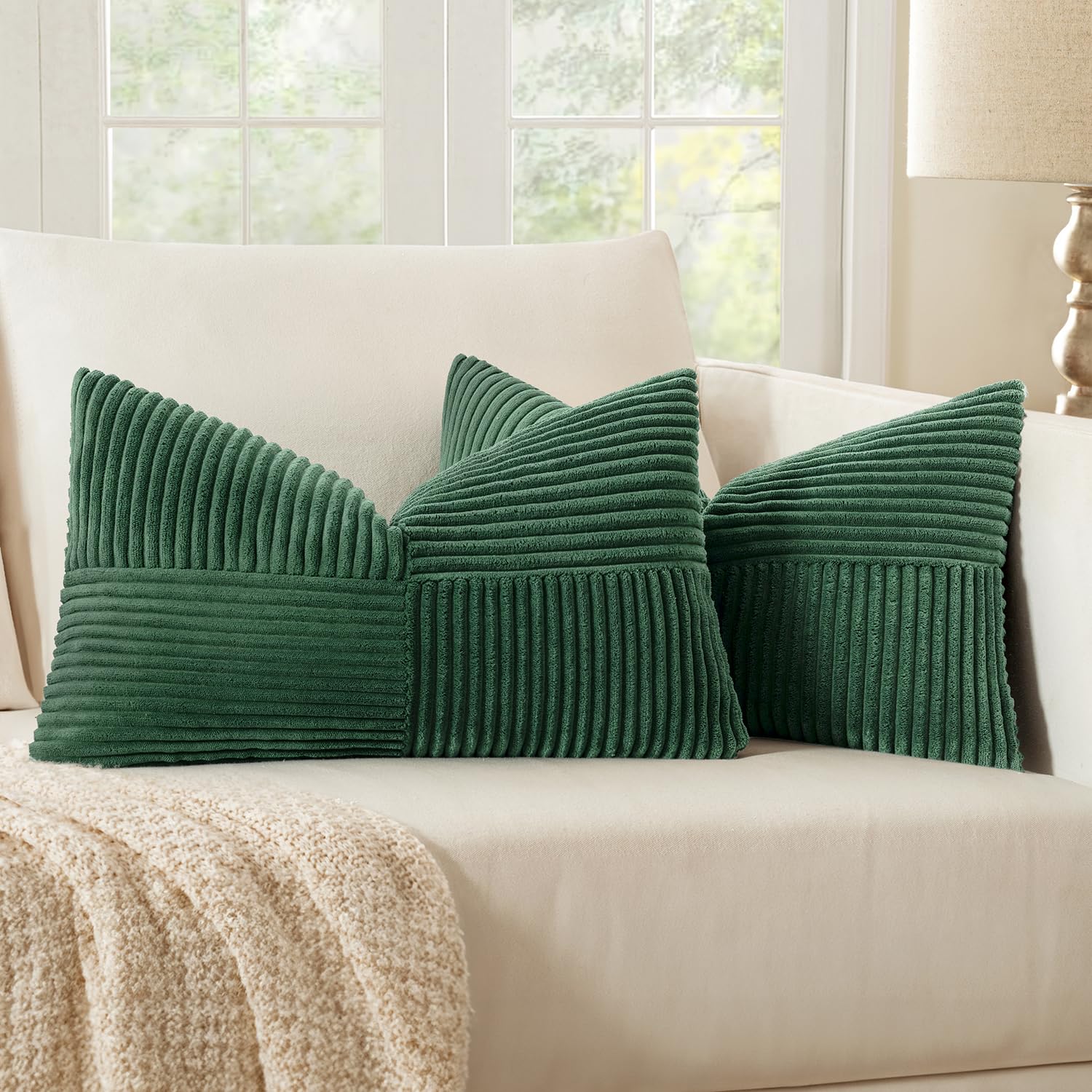 MIULEE 2er Set Kissenbezug 30x50cm Dunkelgrün Kissenhülle Kissenbezüge Sofakissen Dekokissen Boho Couchkissen Kord Dekorative Zierkissenbezug für Sofa