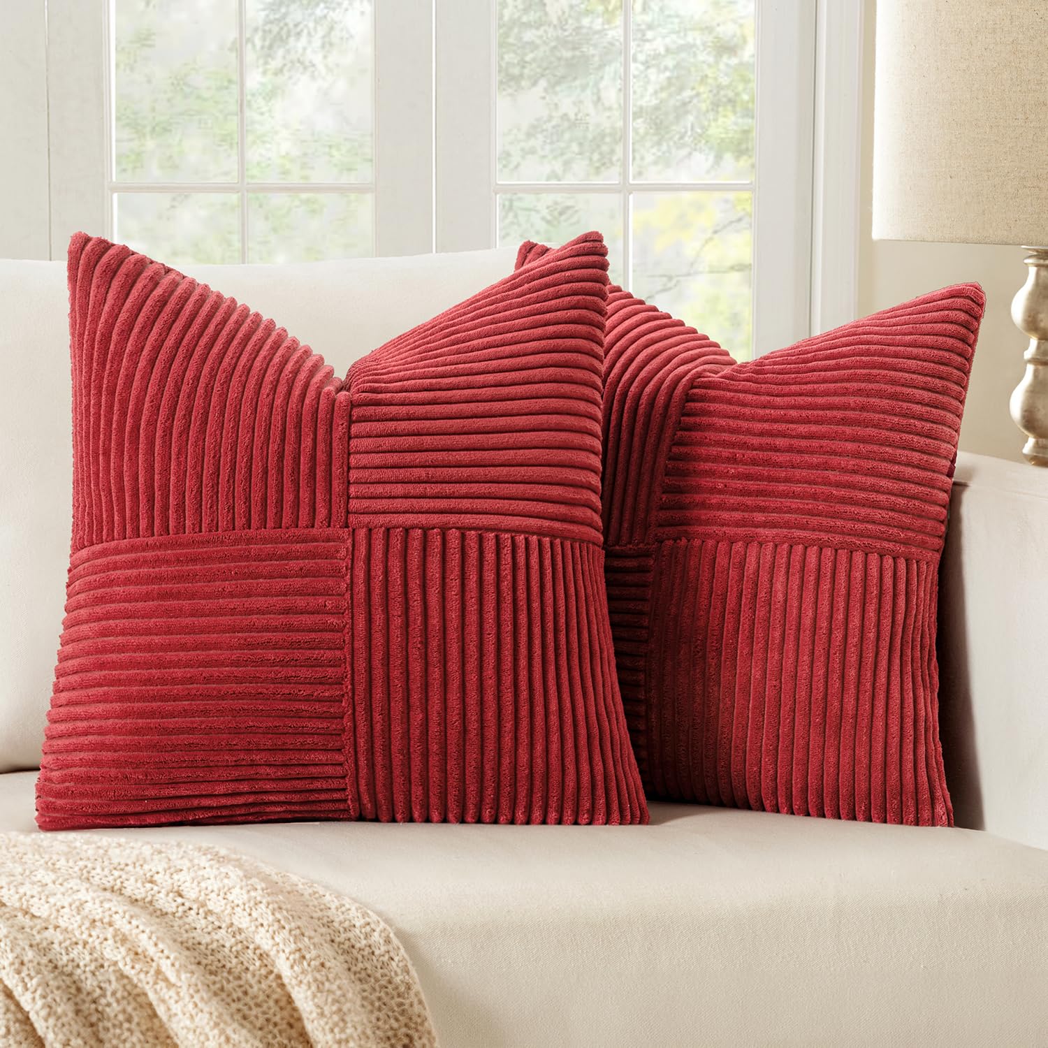 MIULEE 2er Set Kissenbezug 40x40cm Weinrot Kissenhülle Kissenbezüge Sofakissen Dekokissen Boho Couchkissen Kord Dekorative Zierkissenbezug für Sofa
