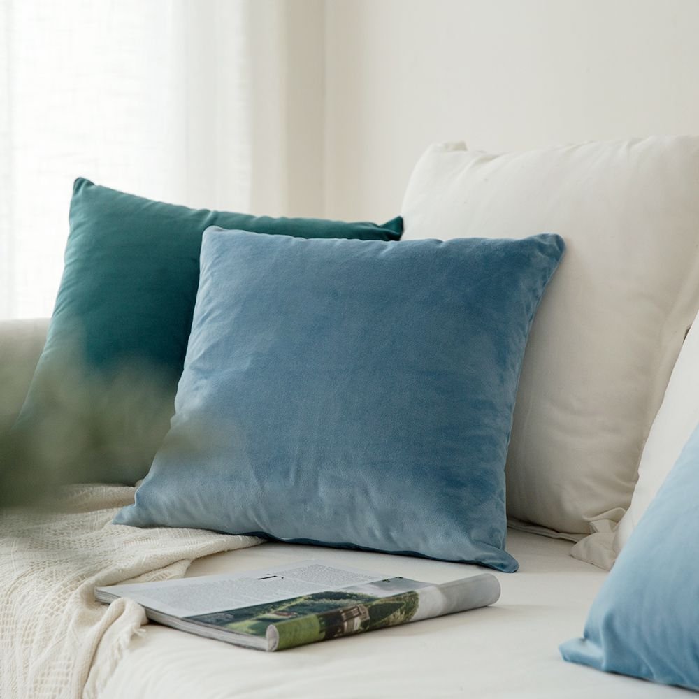 MIULEE 2er Set Kissenbezug Kissenhülle Dekorative Dekokissen Sofakissen Quadrat Wurfkissenbezug mit Verstecktem Reissverschluss Sofa Schlafzimmer 16x16 Zoll 40x40 cm Hellblau