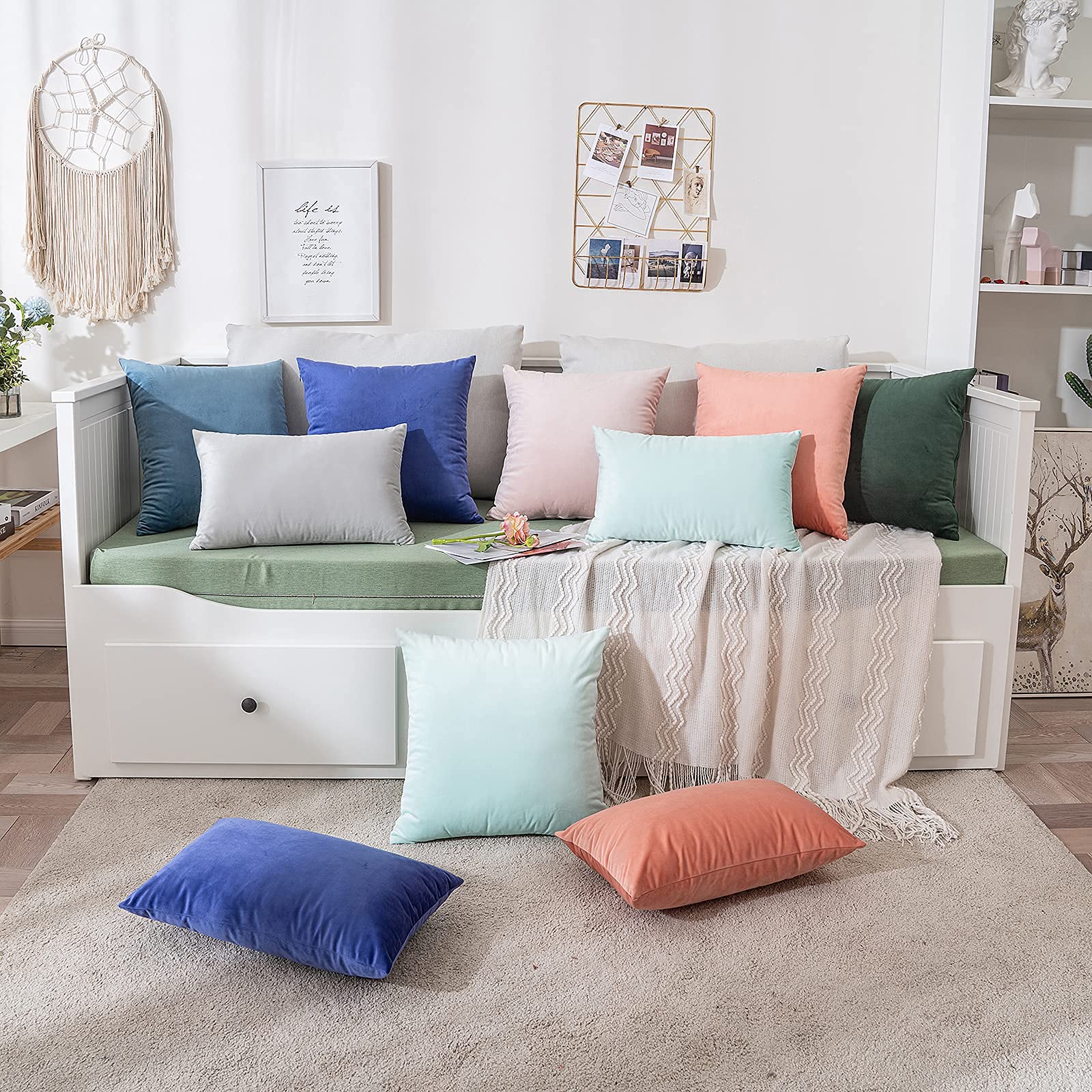 Schnitt: 50 x 50 cm, 2 Stück pro Packung. Bitte erlauben Sie 1-2 cm Masstoleranz aufgrund des Handschneidens und Nähens. Material: Diese Bezüge bestehen aus hochwertigem Polyestergewebe, das sich weich anfühlt. Eigenschaften: Der unsichtbare Verschluss ist versteckt und glatt. Geeignet für Wohnzimmer, Schlafzimmer, Sofa, Couch usw. Waschanleitung: Maschinenwaschbar in kaltem Wasser. Bei Bedarf kalt bügeln. Nicht bleichen. MIULEE Zufriedenheit: Jedes Produkt, das wir hergestellt haben, verfügt über eine hohe Qualität und eine brillante Technologie. Wenn Sie irgendwelche Probleme haben, kontaktieren Sie uns bitte und wir werden Ihnen so schnell wie möglich Hilfe anbieten.