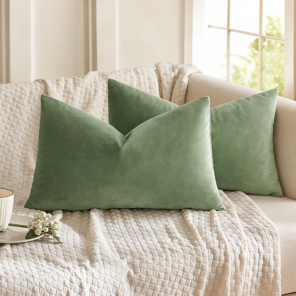 MIULEE 2er Set Kissenbezug Kissenhülle Dekorative Dekokissen Sofakissen Quadrat Wurfkissenbezug mit Verstecktem Reissverschluss Sofa Schlafzimmer 12x20 Zoll 30x50 cm Erbsen Grün