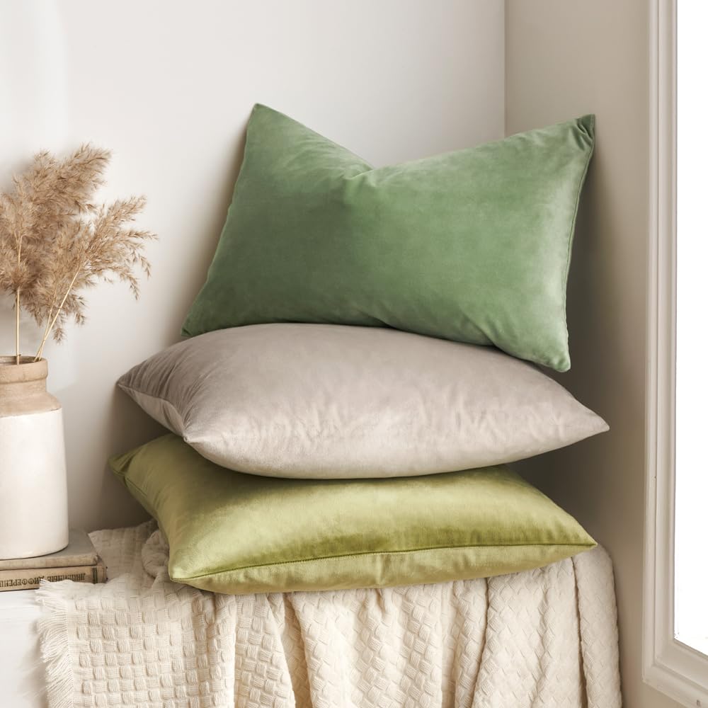 MIULEE 2er Set Kissenbezug Kissenhülle Dekorative Dekokissen Sofakissen Quadrat Wurfkissenbezug mit Verstecktem Reissverschluss Sofa Schlafzimmer 20x20 Zoll 50x50 cm Erbsen Grün