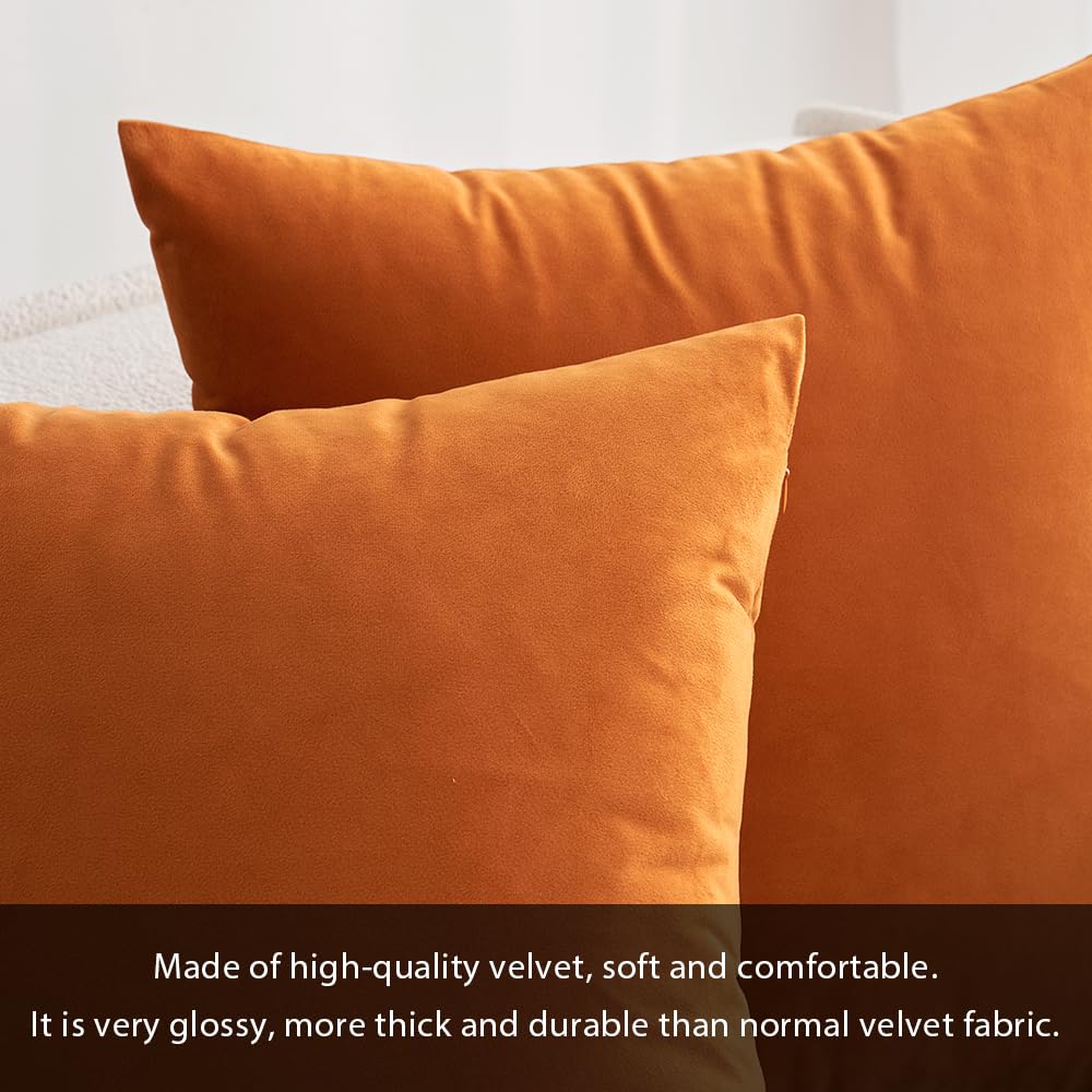 MIULEE 2er Set Samt Soft Solid Dekorative Quadrat Wurf Kissenbezüge Set Kissen Fall für Sofa Schlafzimmer Orange 16x16 Zoll 40x40 cm