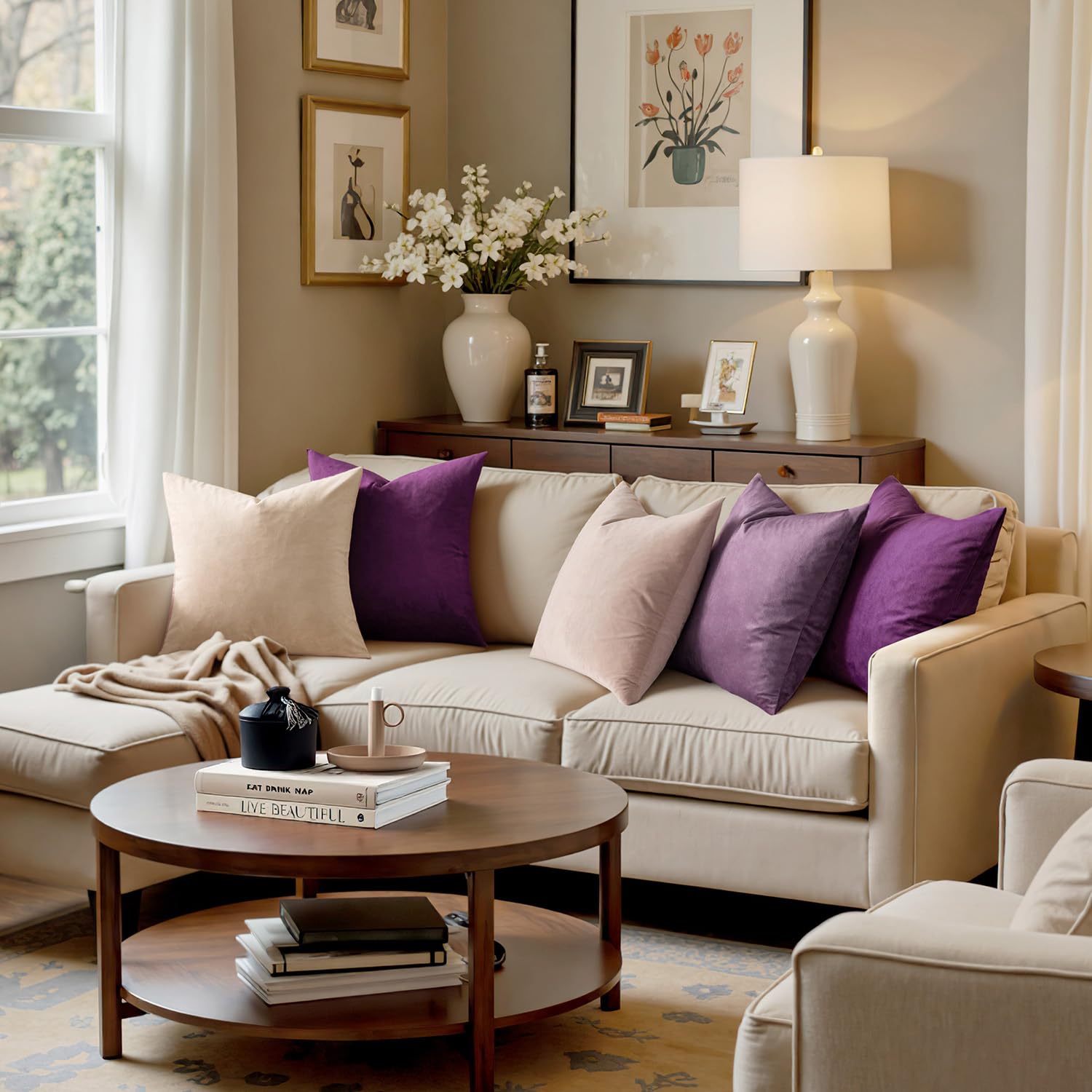MIULEE 2er Set Samt Zierkissenbezug ohne Füllung-Zierkissenhülle Dekorative Kissenbezug Dekokissen Kissenhülle mit Verstecktem Reissverschluss Aubergine Lila 20x20 Zoll 50 x 50 cm