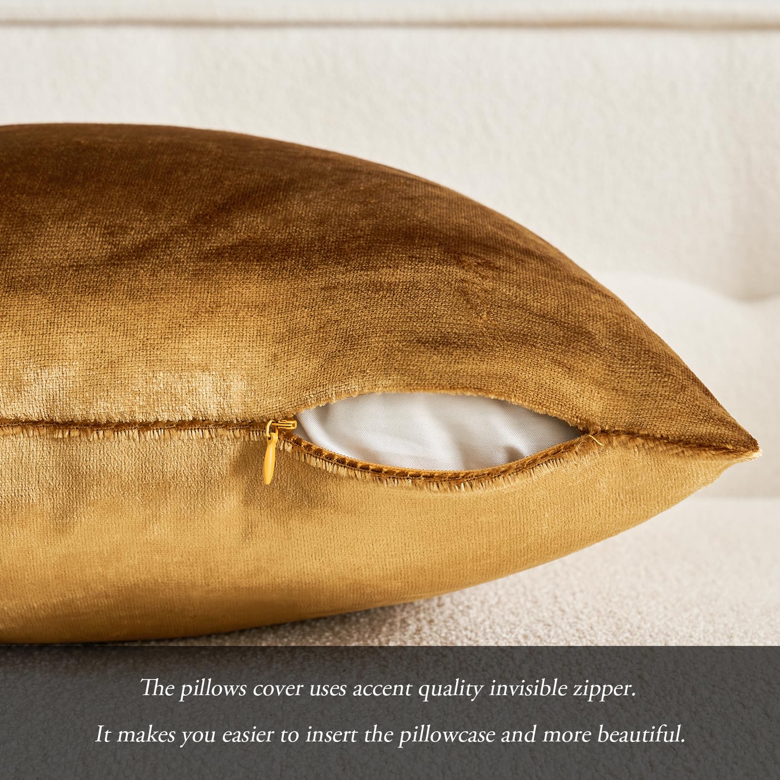 MIULEE 2er Set Kissenbezug Kissenhülle Dekorative Dekokissen Sofakissen Quadrat Wurfkissenbezug mit Verstecktem Reissverschluss Sofa Schlafzimmer 18x18 Zoll 45x45 cm Champagner Golden