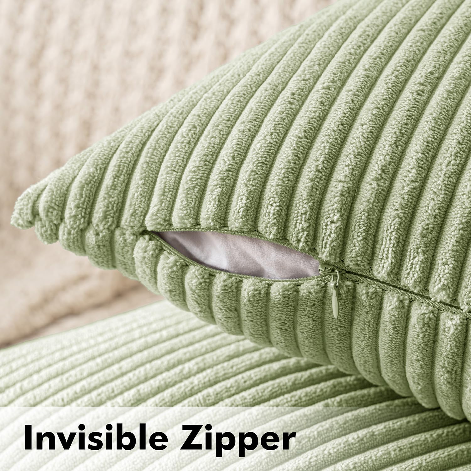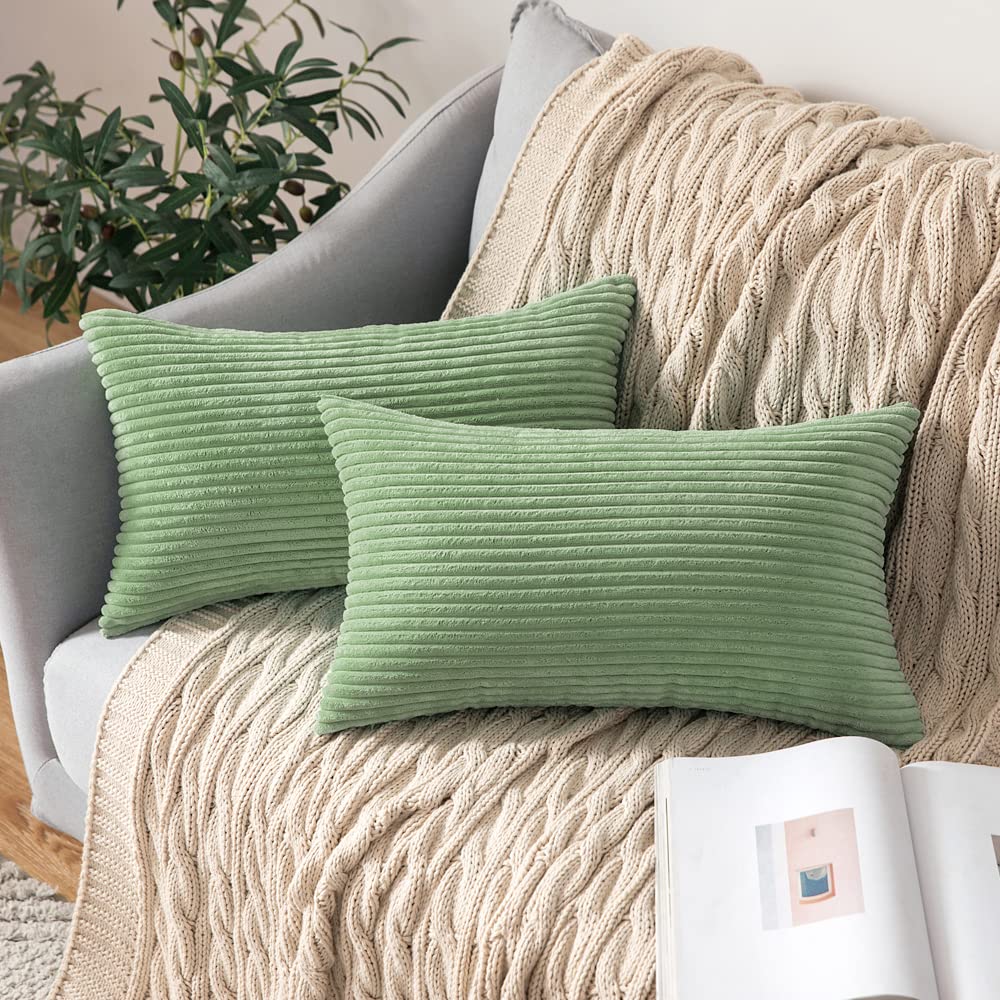 MIULEE Kissenbezug Kordsamt Zierkissenbezug Dekokissen Sofakissen Kord Kissenhülle Dekorative Weiche Zierkissenbezüge Kissen für Sofa Sessel Zuhause Schlafzimmer 30x50 cm Bohnengrün