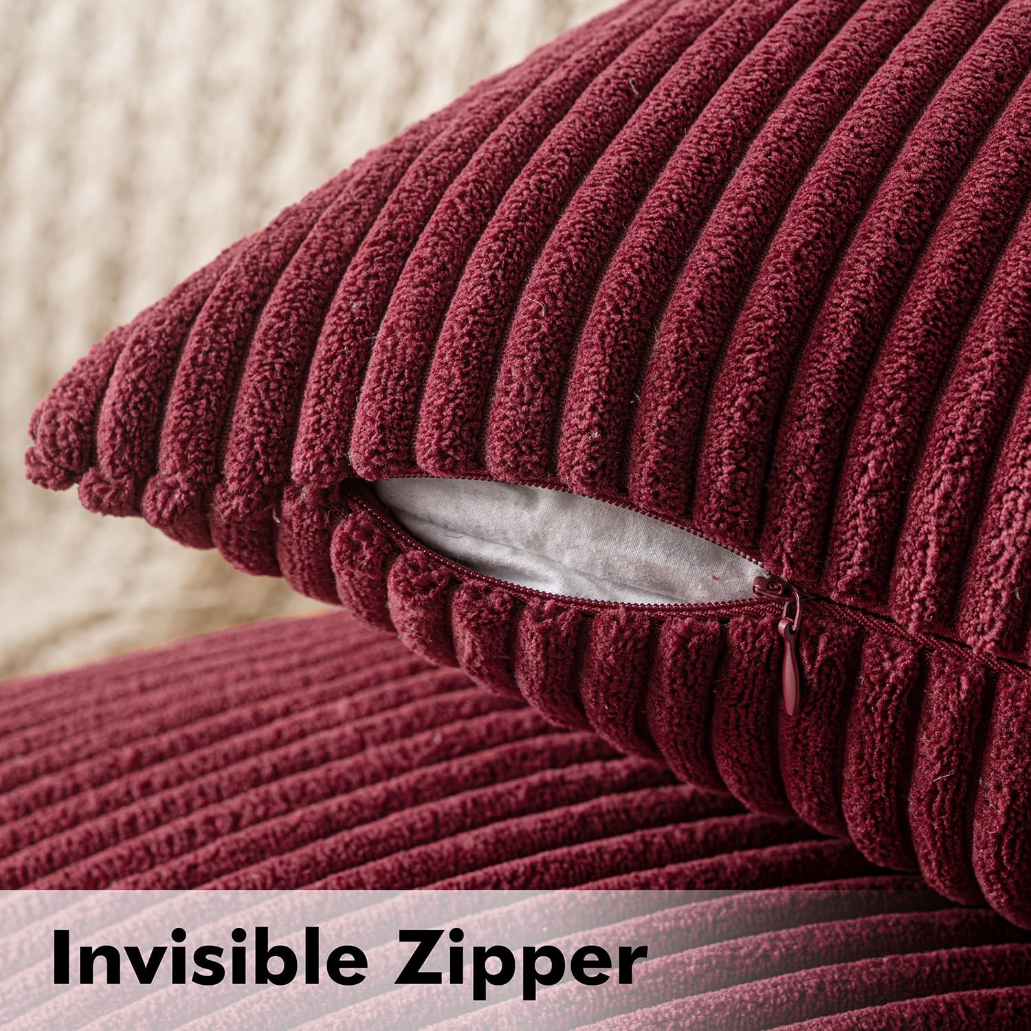 MIULEE 2er Set Weihnachten Kissenbezüge Kord Kissenhülle Dekorative Kissenbezug Sofakissen Couchkissen Dekokissen Zierkissenbezug Deko Kissenhülle mit Verstecktem Reissverschluss 45x45 cm WeinRot